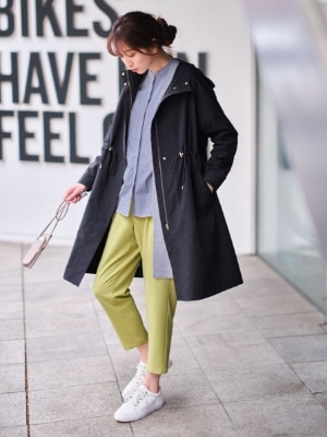 エフォートレス感が演出できますハリ感のあるフード付きロングコートは、ウエスト