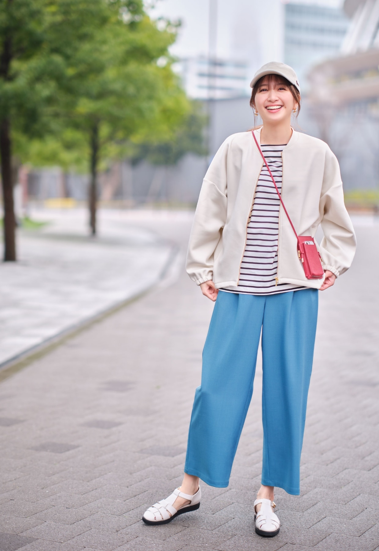 大人のボーイッシュカジュアルふわっと柔らかい素材が特徴。裾のコードを引く