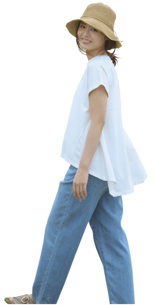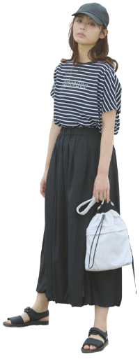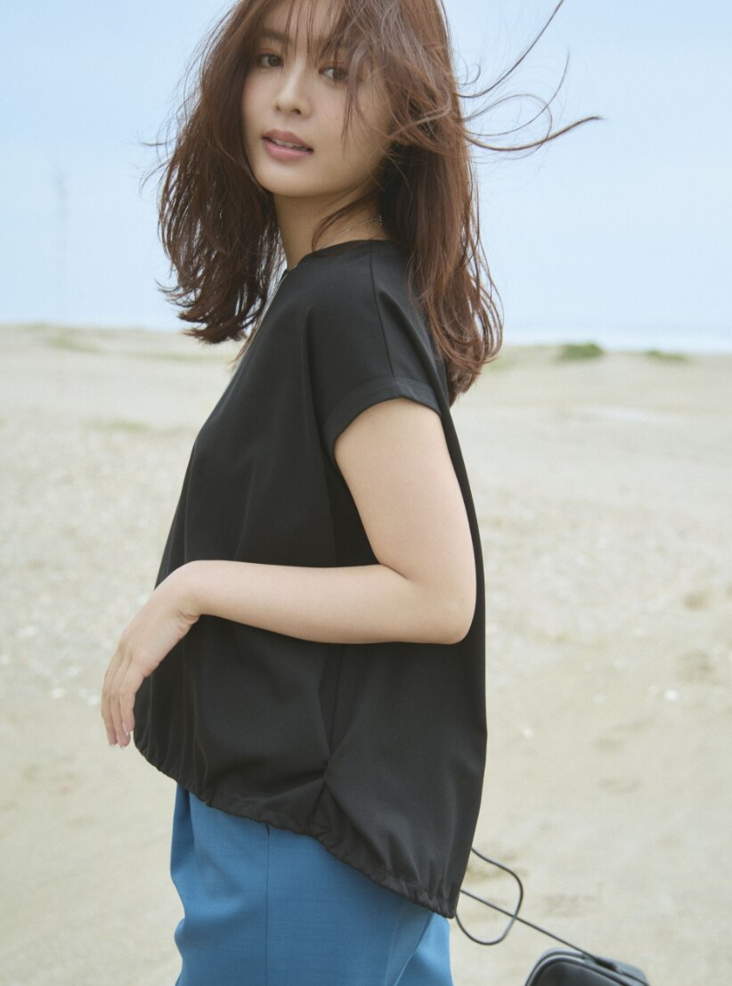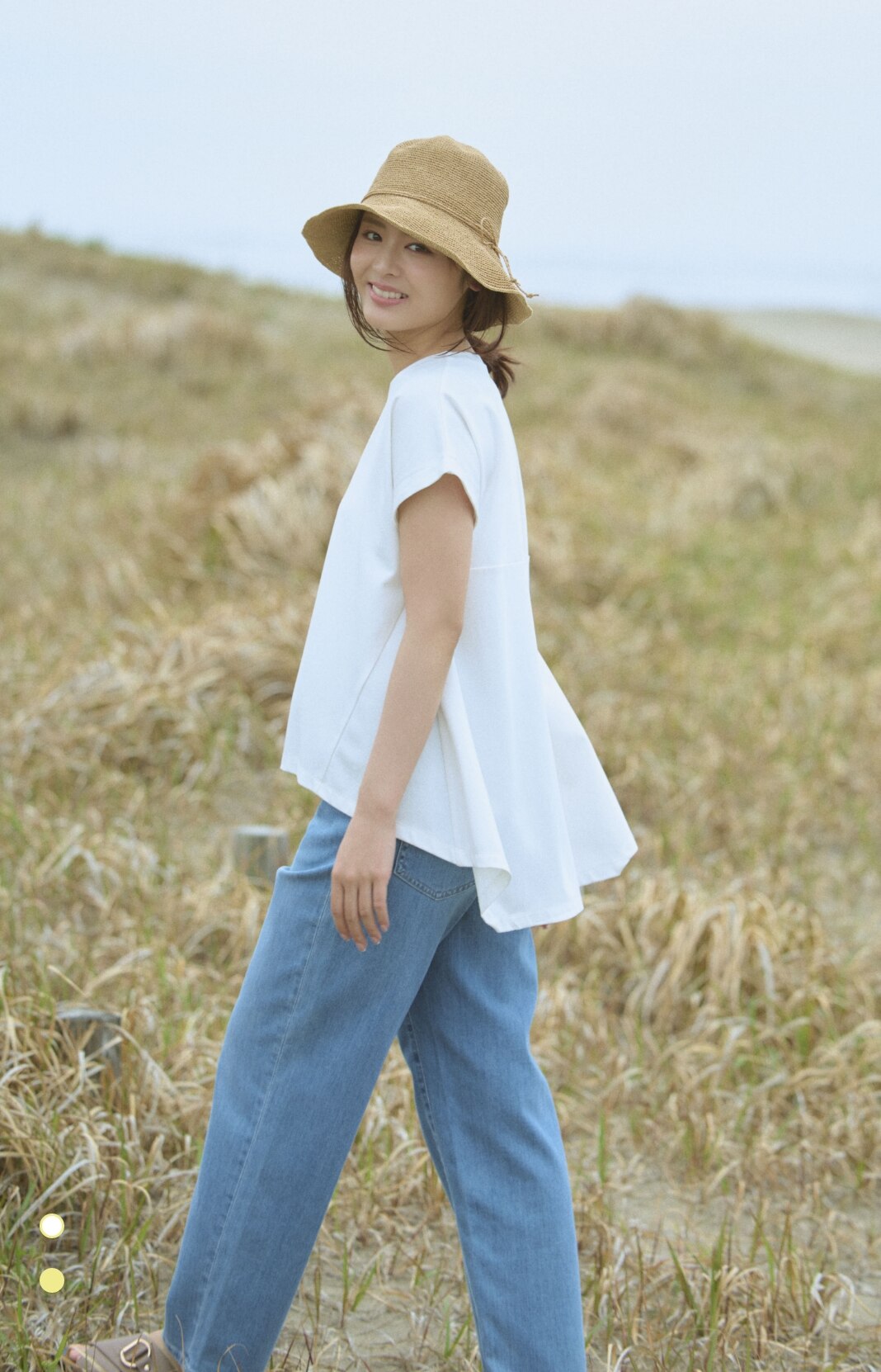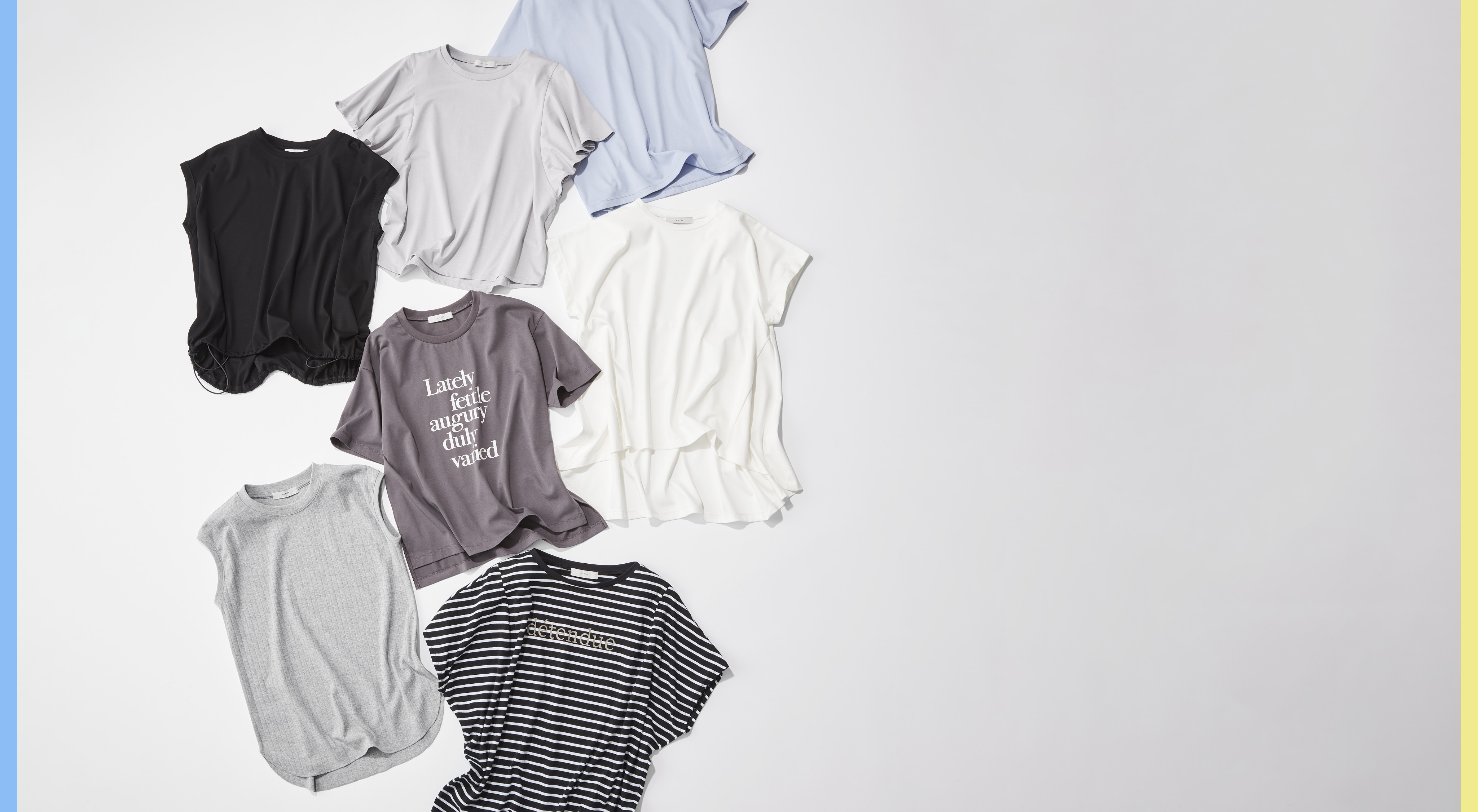 肩にタックをとった立体的なフォルムは、生地が肌にはりつきにくく、風通しよく心地よく着こなせる。定番色から夏カラーまで、ボーダーも含めた多彩なカラバリ展開。買いやすいプライスだから、色違いで集めたくなる!