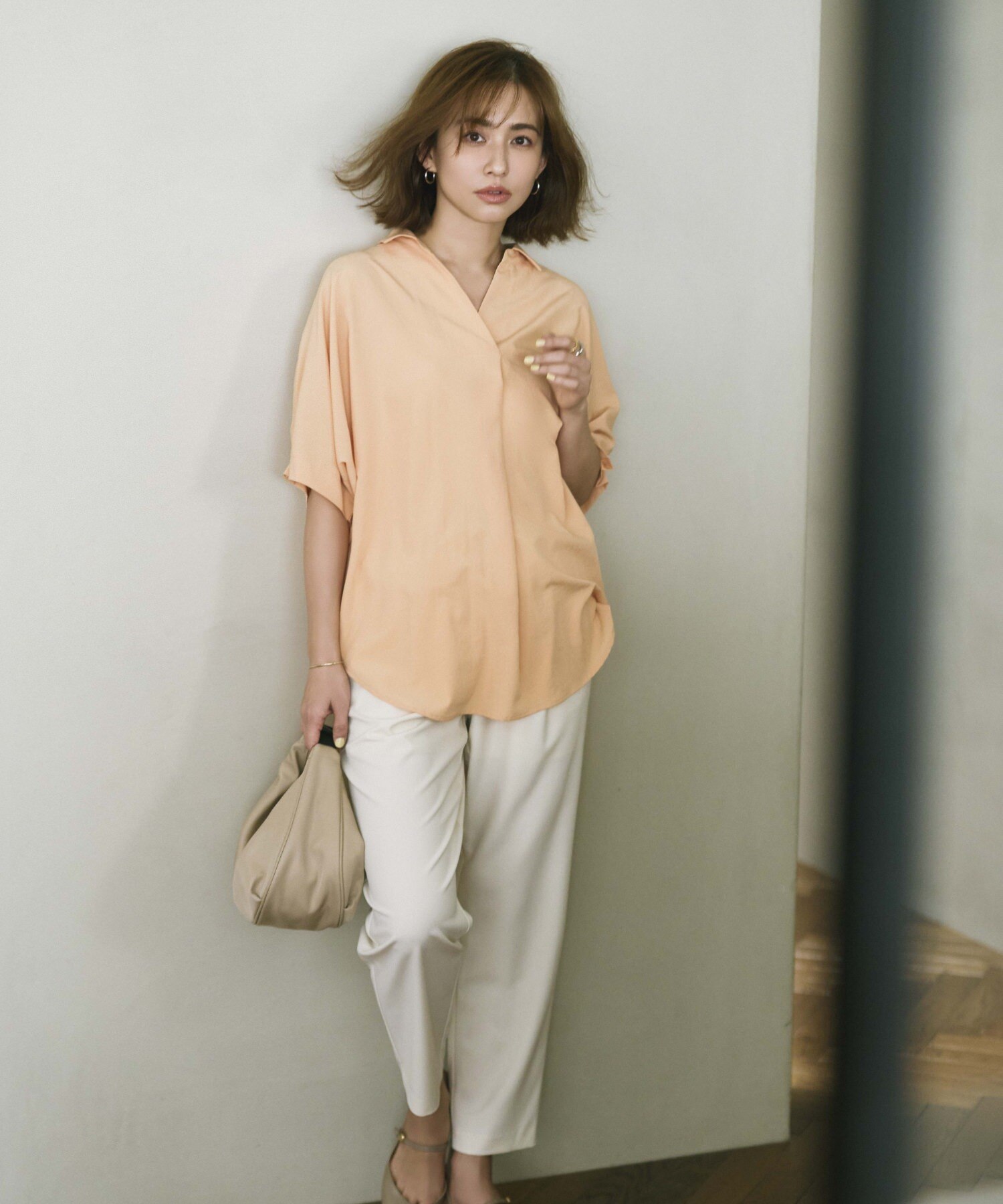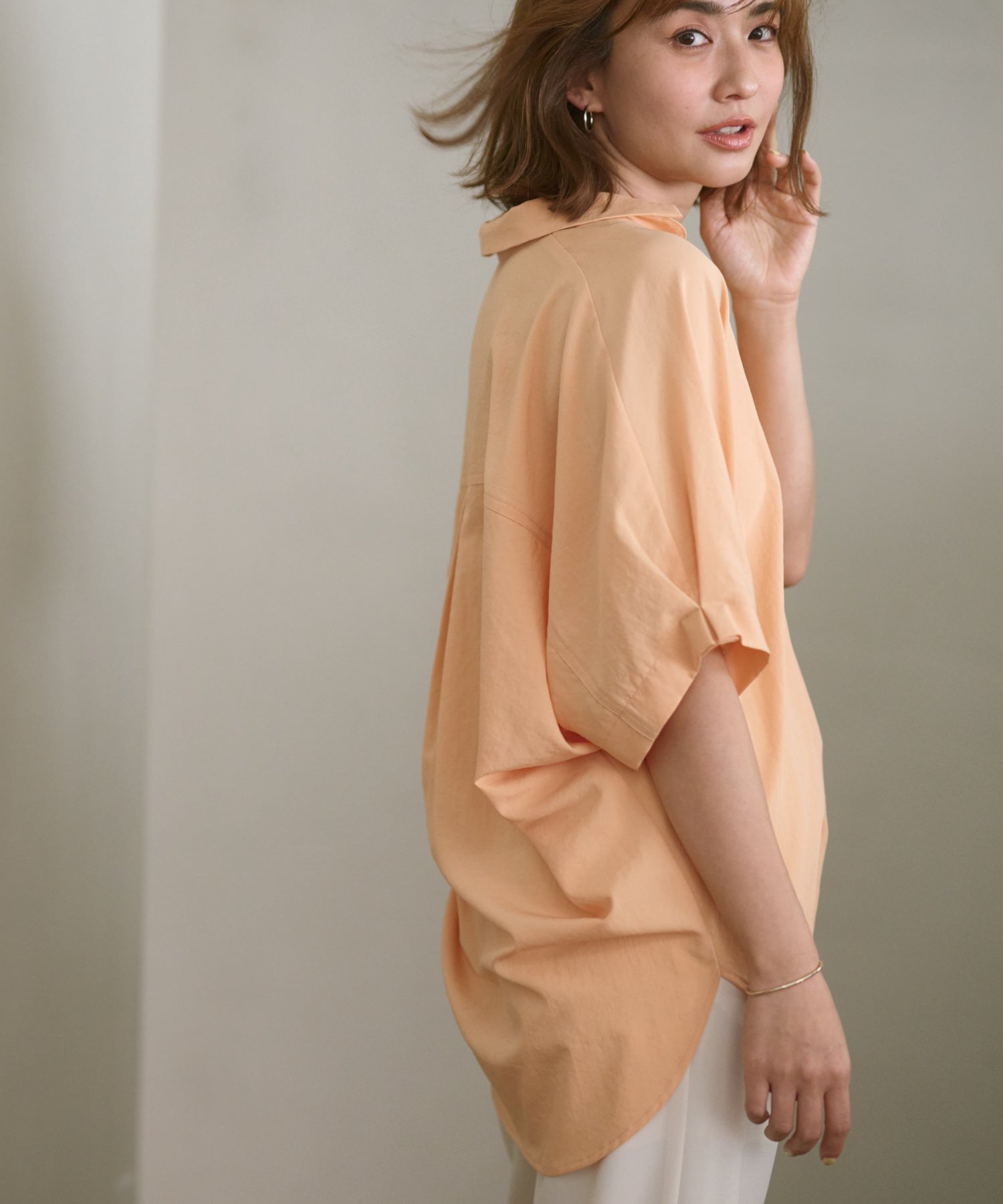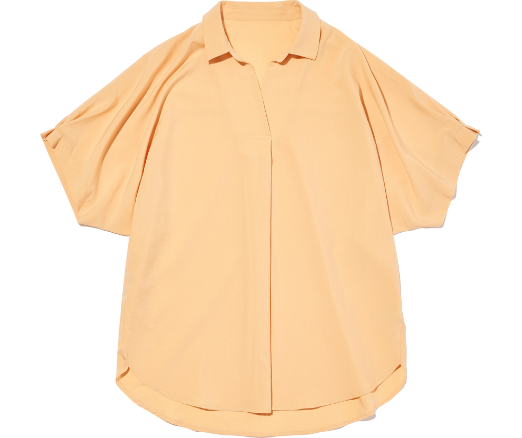 リラクシーに着られるスキッパータイプ。袖に立体的なタックが施されることで全方位オシャレ見えが叶います。爽快なシャーベットオレンジの他、キリっと感のあるストライプなど、涼やかなカラーリングバリエも見逃せない!