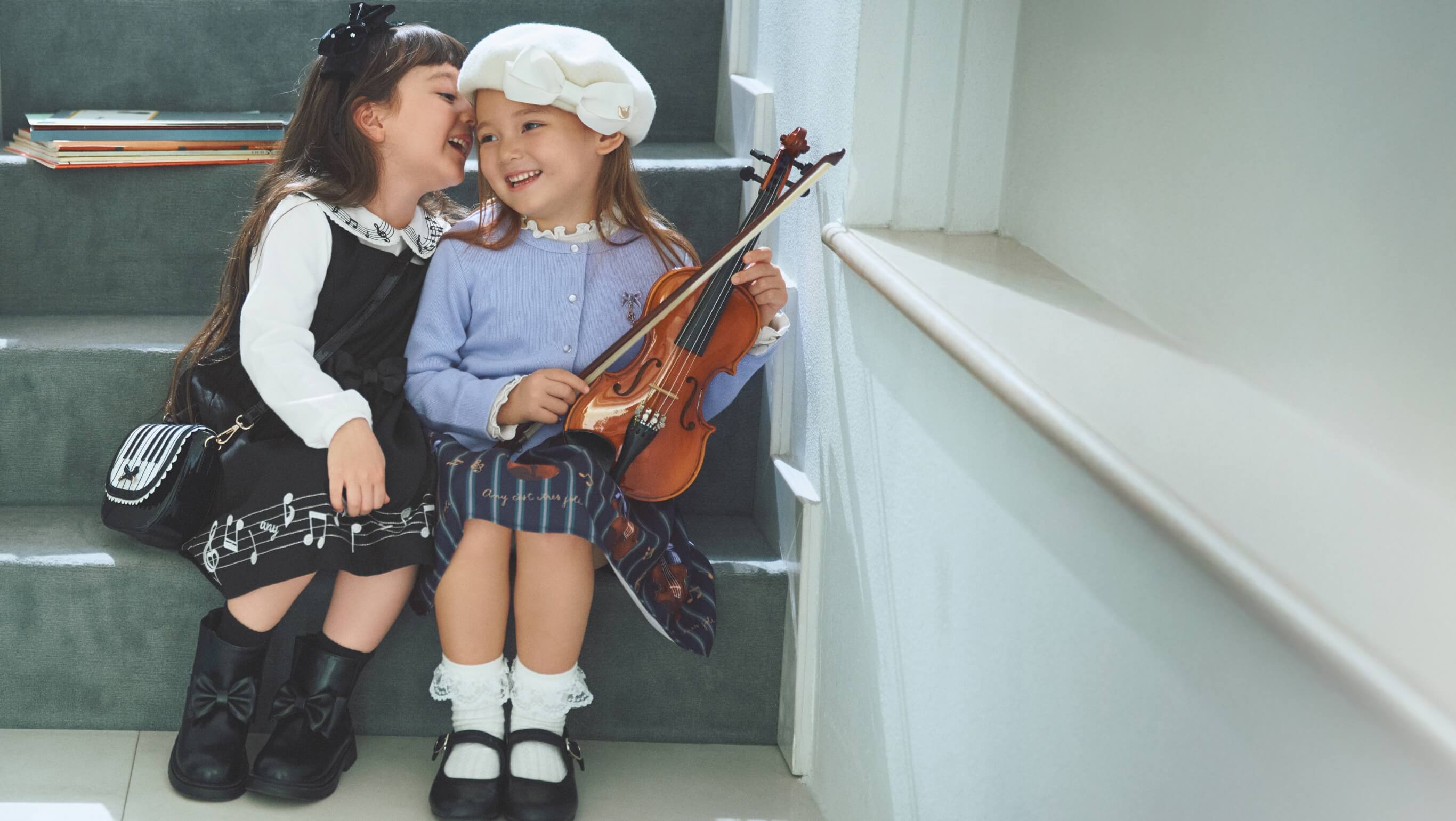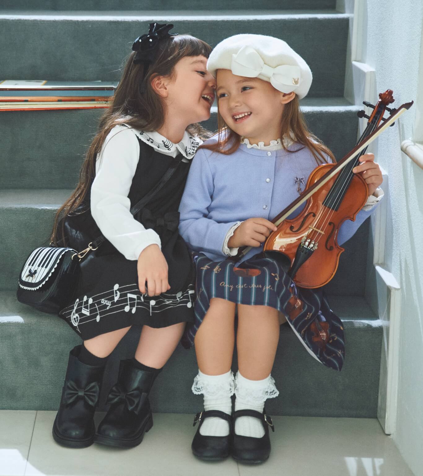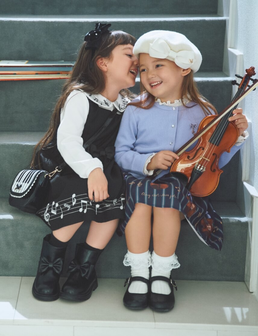 ピアノ、バイオリン、バレエをモチーフにしたおけいこシリーズ。トップスからボトムス、ワンピースの豊富なラインアップで、それぞれトータルコーディネートを楽しめます♪お出かけ用にはもちろん、洗濯機洗い可能な素材やポケット付きのデザインで、デイリーに使えるところも嬉しいポイント。