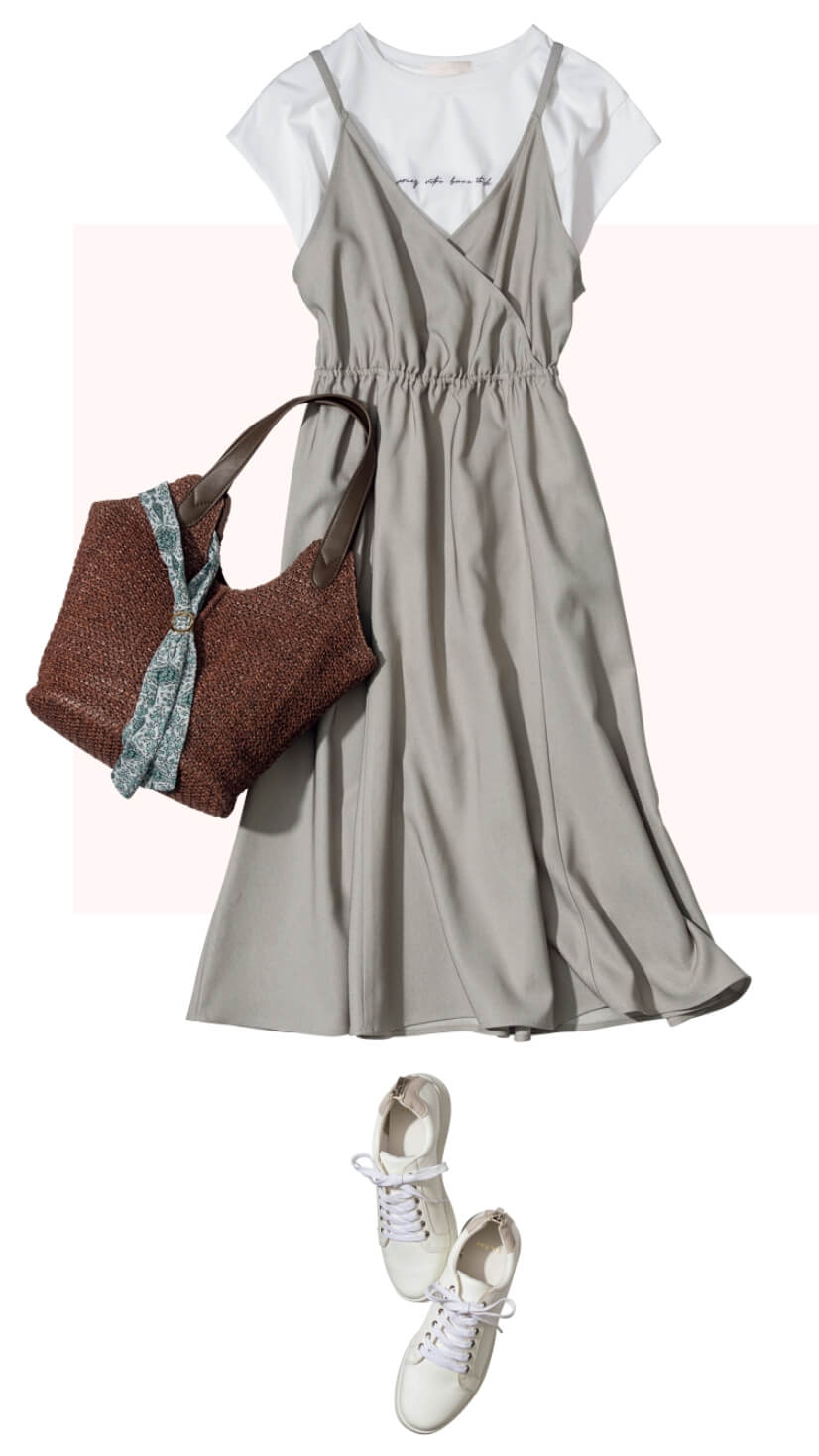日常のシーンにもしっくりなじむ主役ワンピースをスタンバイ。