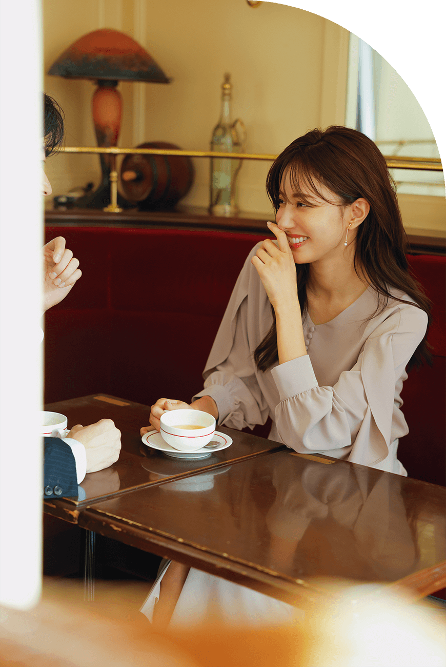 「初対面で相手を判断するのは、8割が見た目。大事なのは〝好感度〟と〝女性らしさ〟です。まずきっかけを作って距離を縮め、しだいに中身を知り、愛してもらう…そのためにもファッションは大事な要素だと思います」。