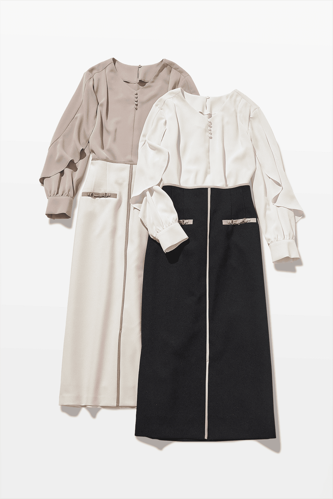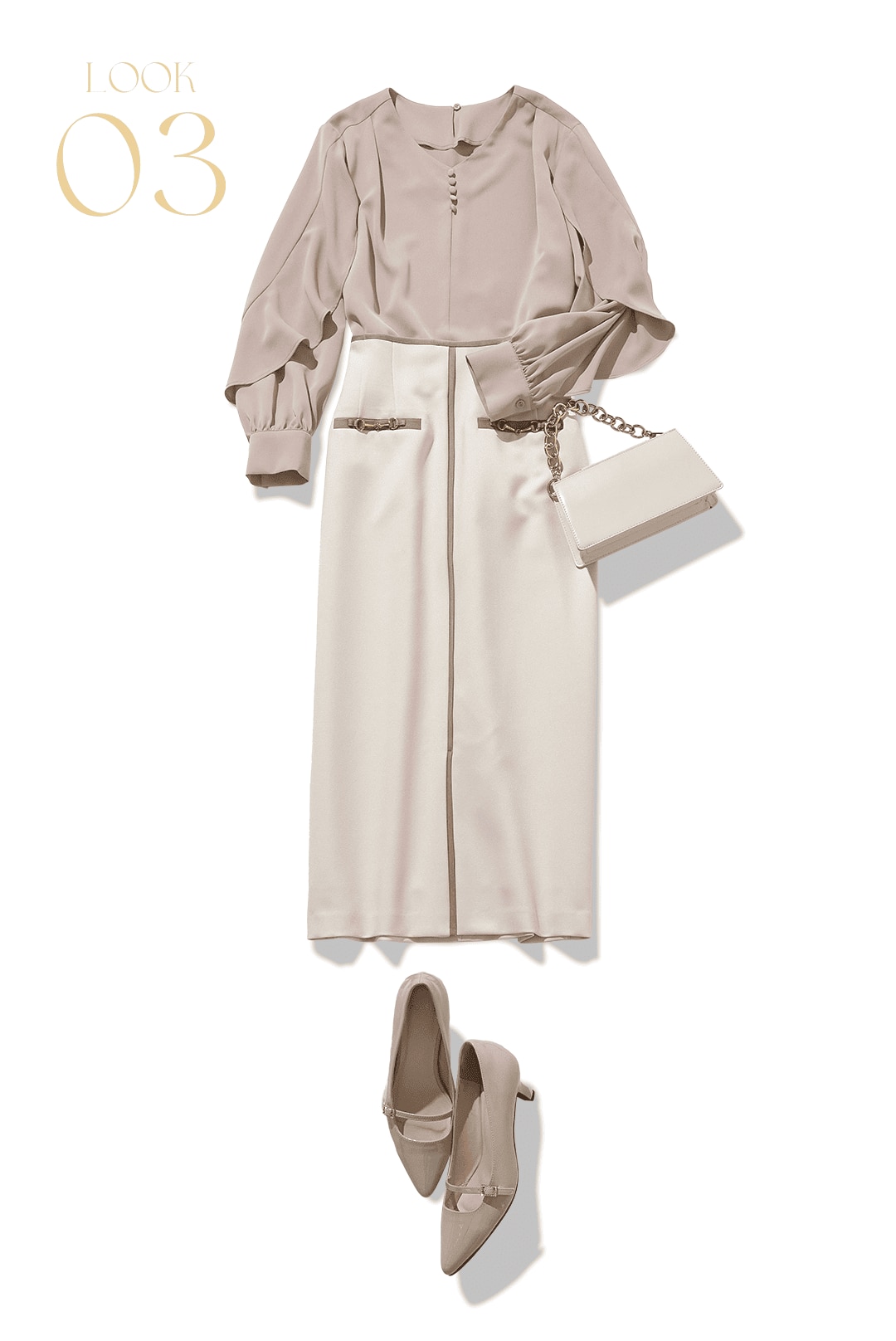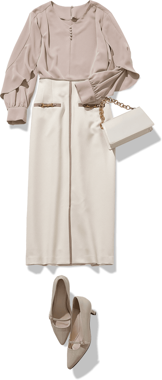 ハイウエストで腰回りがピタッとしたシルエットと上半身の揺れ感のギャップが最高です。媚びた甘さではなく知的な雰囲気の女性らしさも大人っぽくて好印象。ニュアンスカラーや白は、秋冬でも活用したい色ですね。