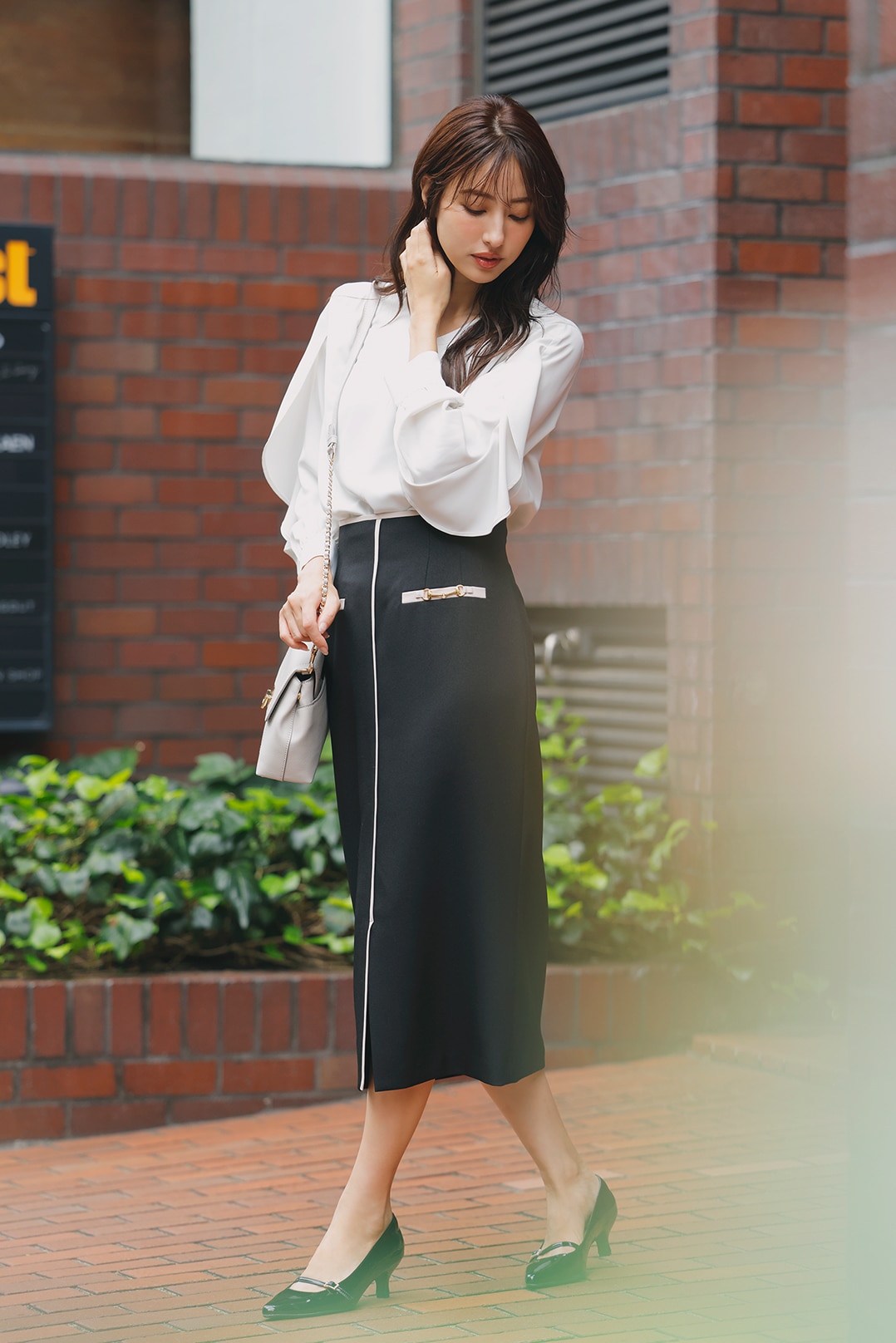 甘ブラウス×タイトスカートの