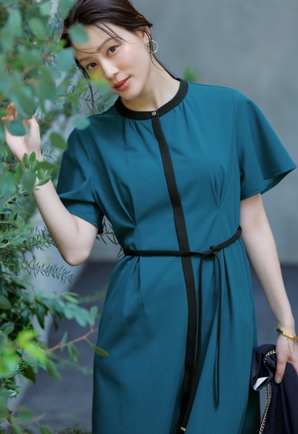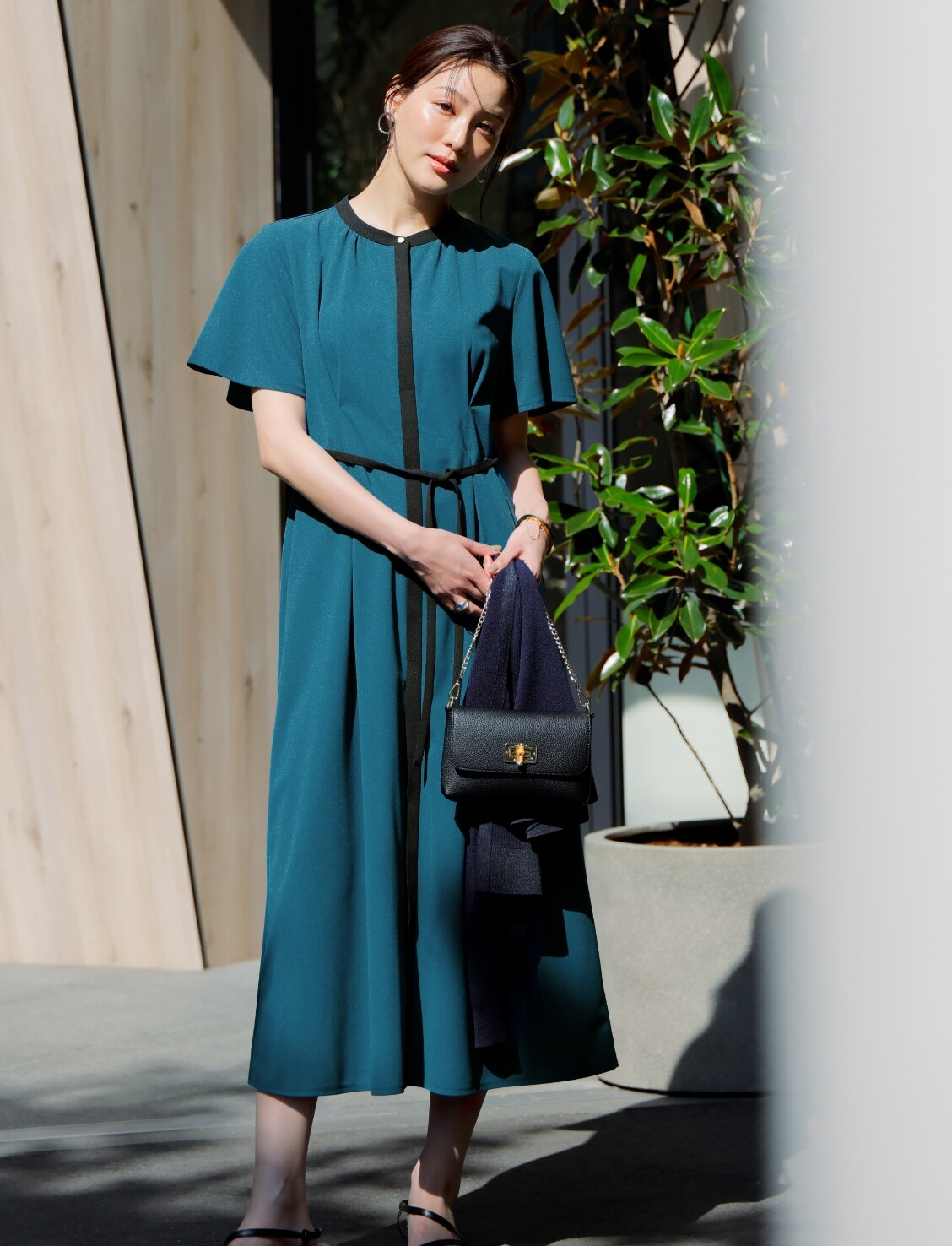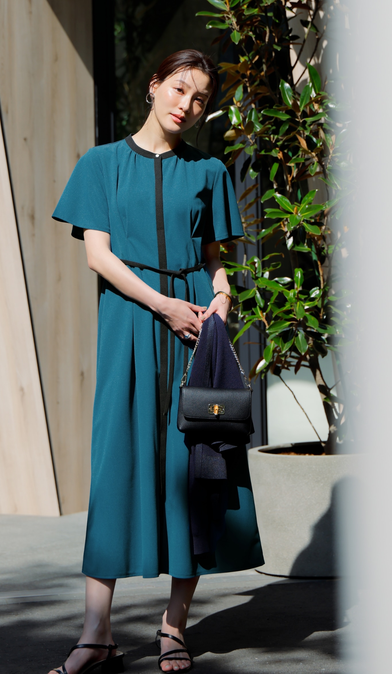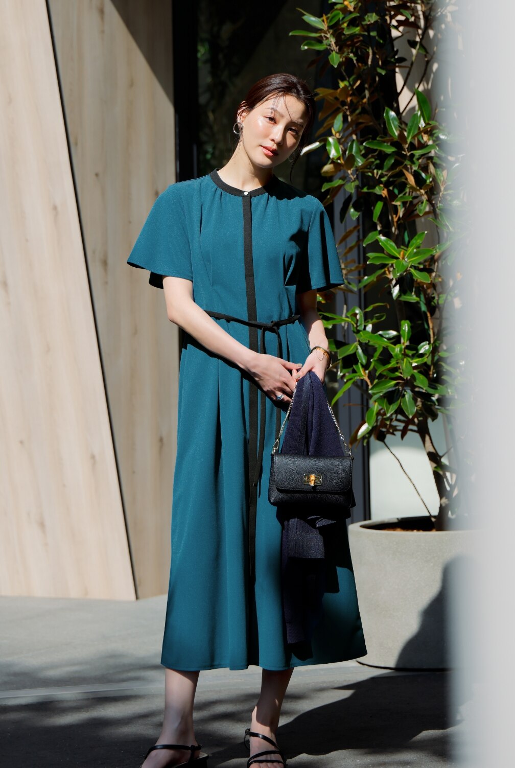 さらりと風通しよく着られてエレガントに見えるワンピースは夏のおしゃれの強い味方!高めの位置に施されたウエストタック、Iラインを強調するバイカラーデザインがスタイルアップも叶えてくれる。