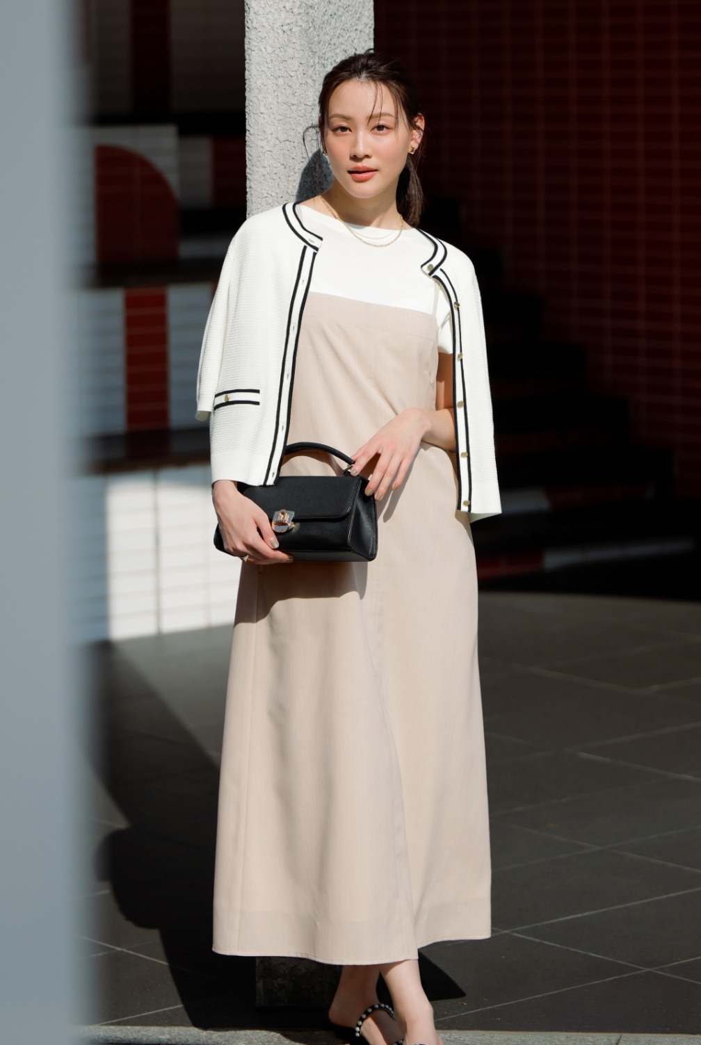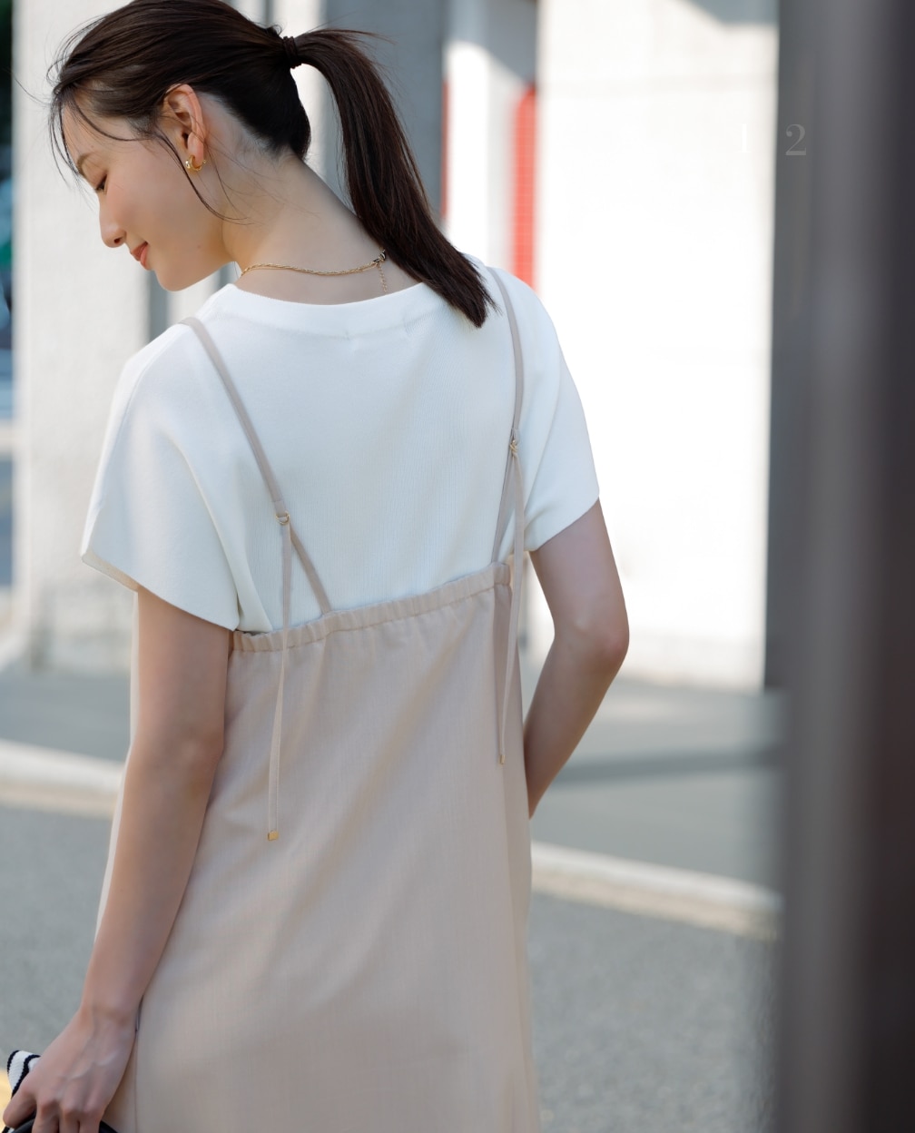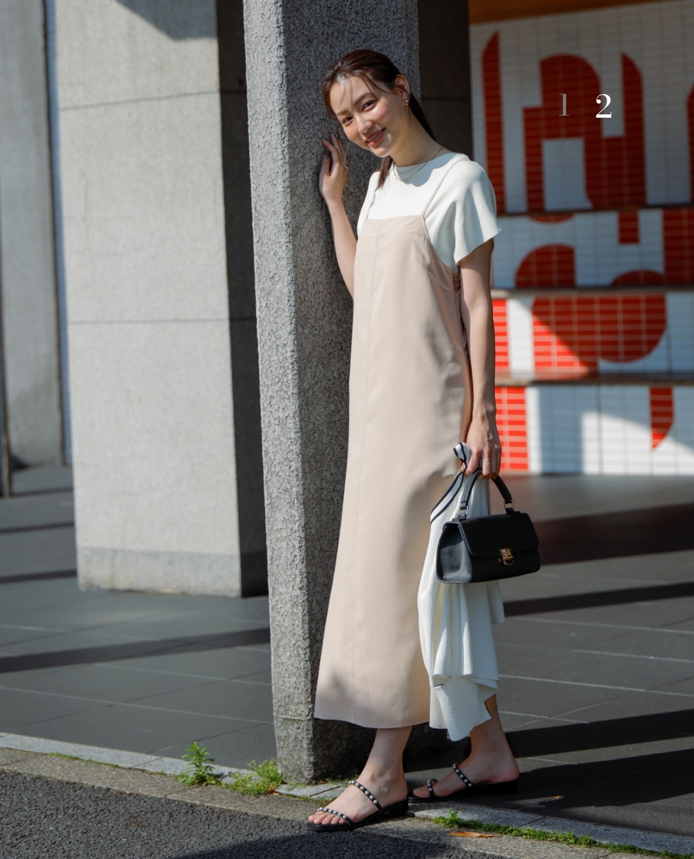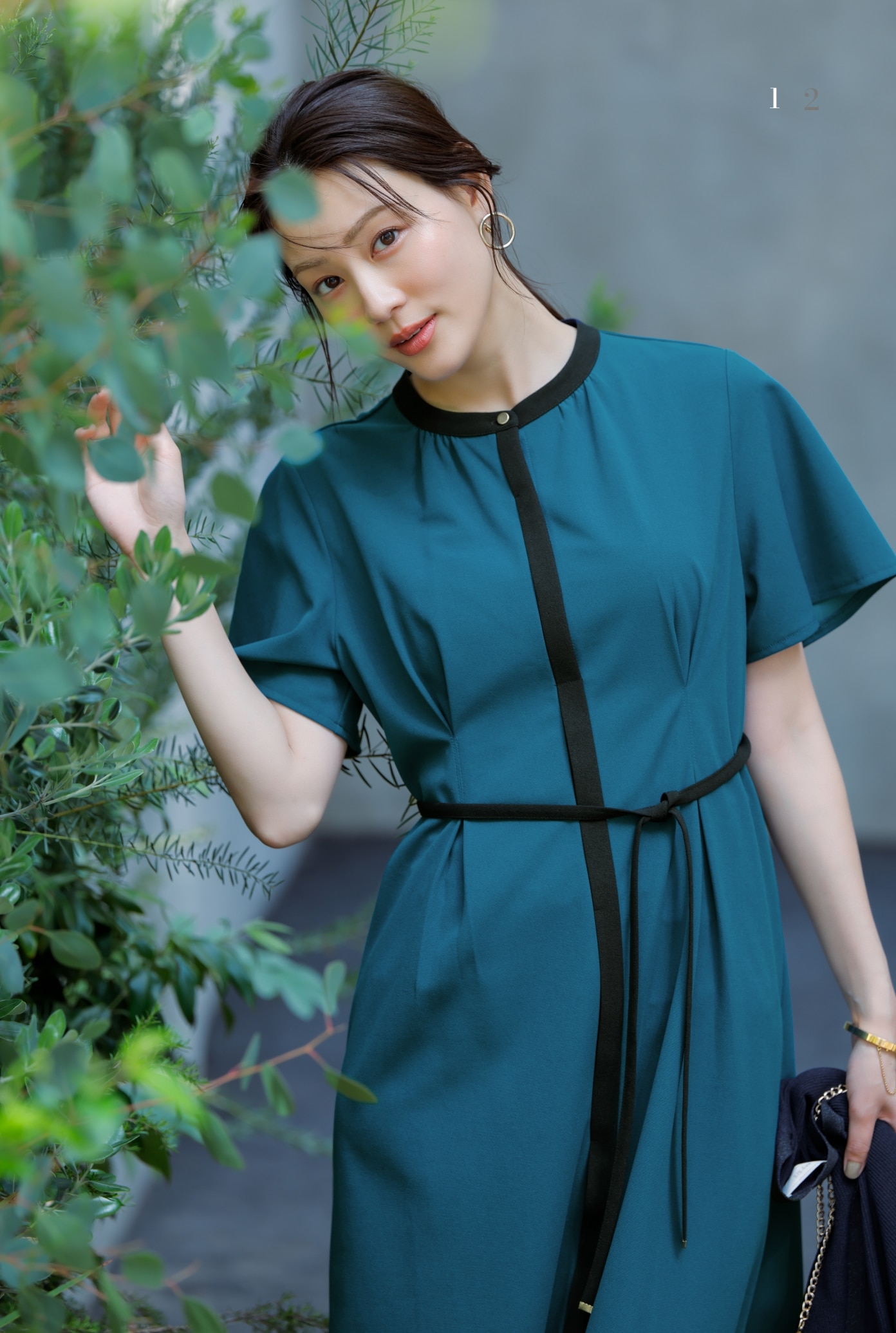 さらりと風通しよく着られてエレガントに見えるワンピースは夏のおしゃれの強い味方!高めの位置に施されたウエストタック、Iラインを強調するバイカラーデザインがスタイルアップも叶えてくれる。