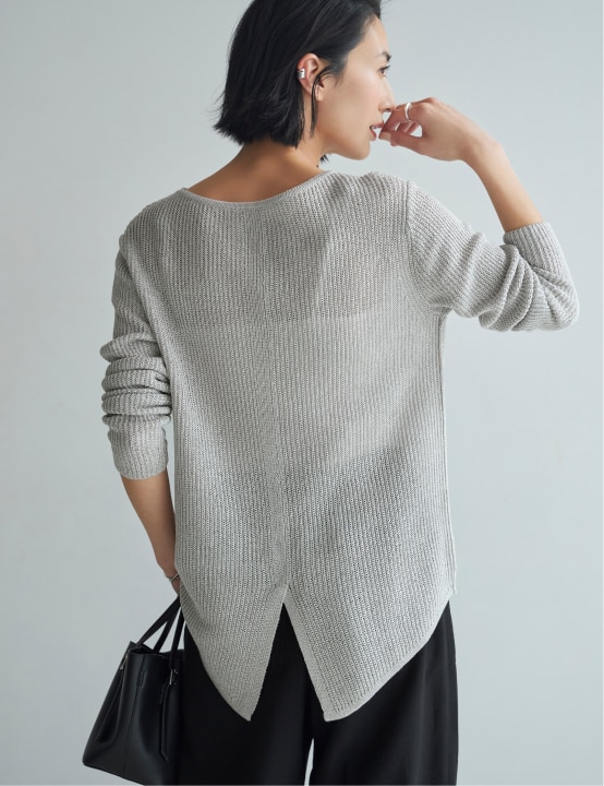 清涼感のある和紙混ながら、シルクのような艶やかな光沢を併せ持ったニット。