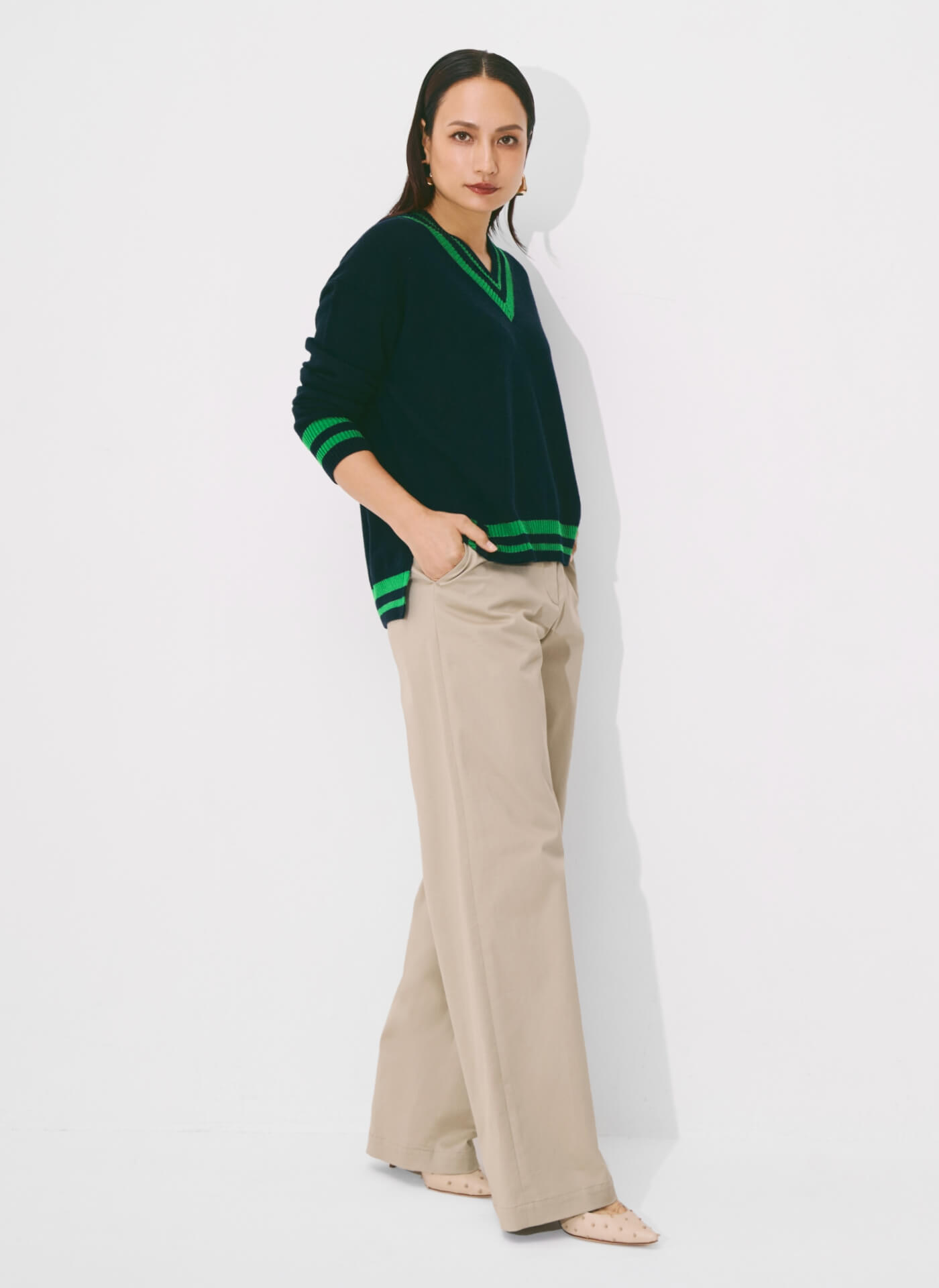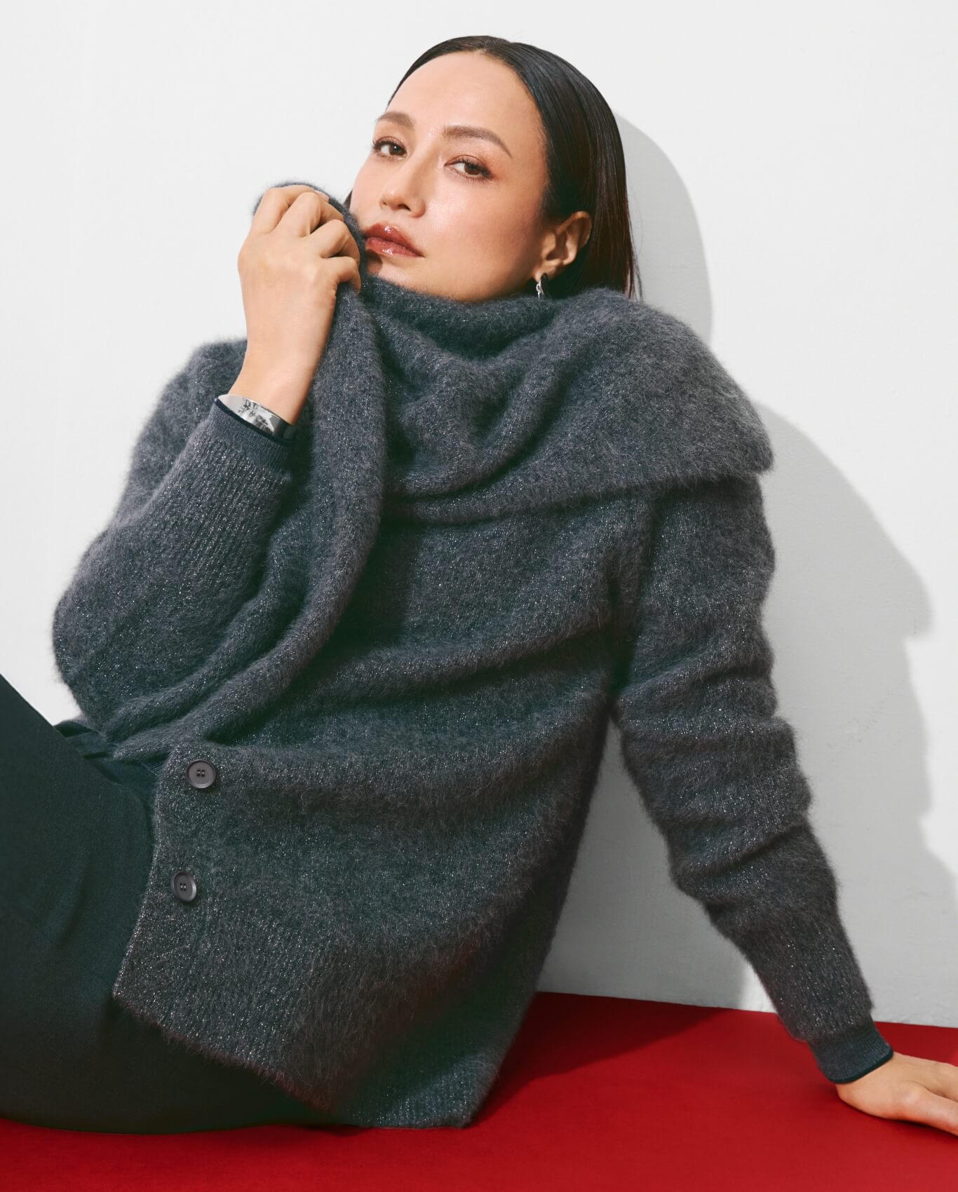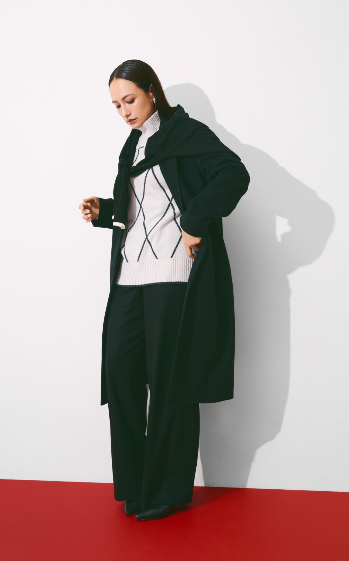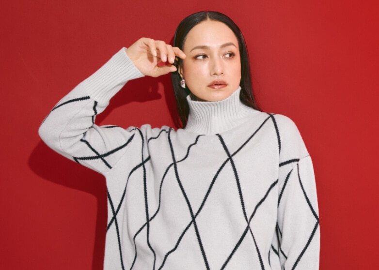 縦長ダイヤ柄ニットでエッジを効かせて。