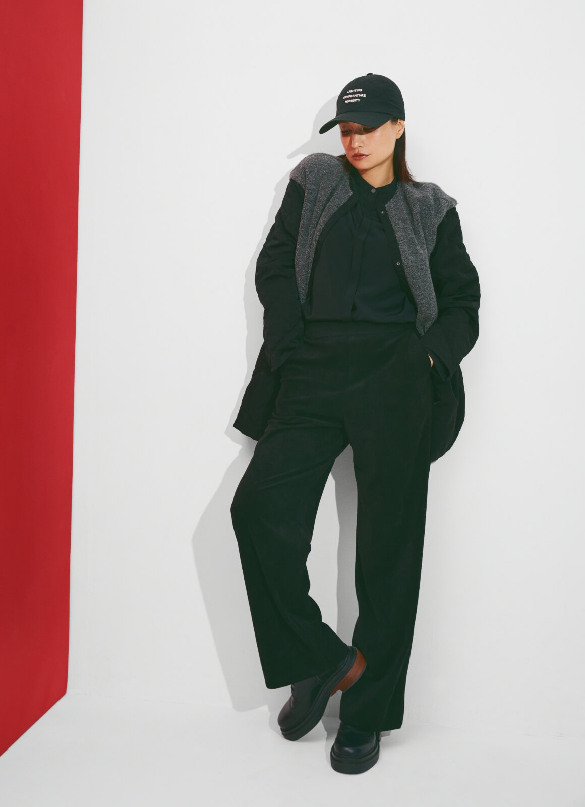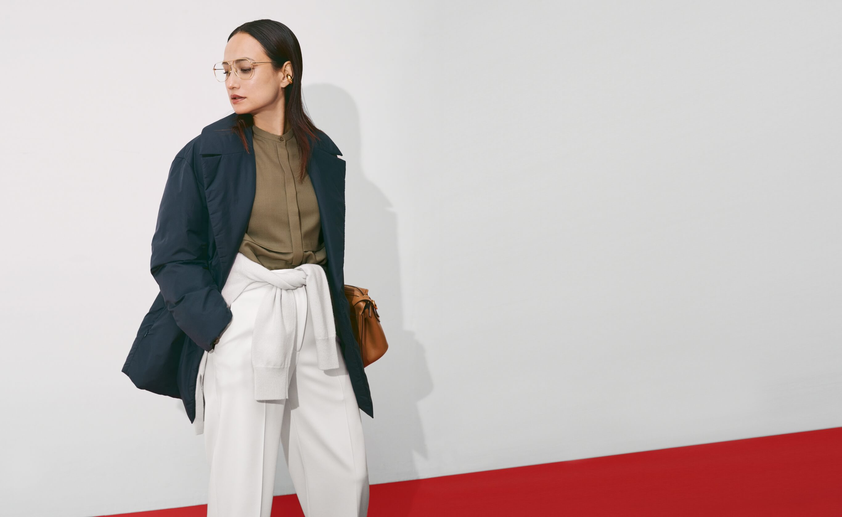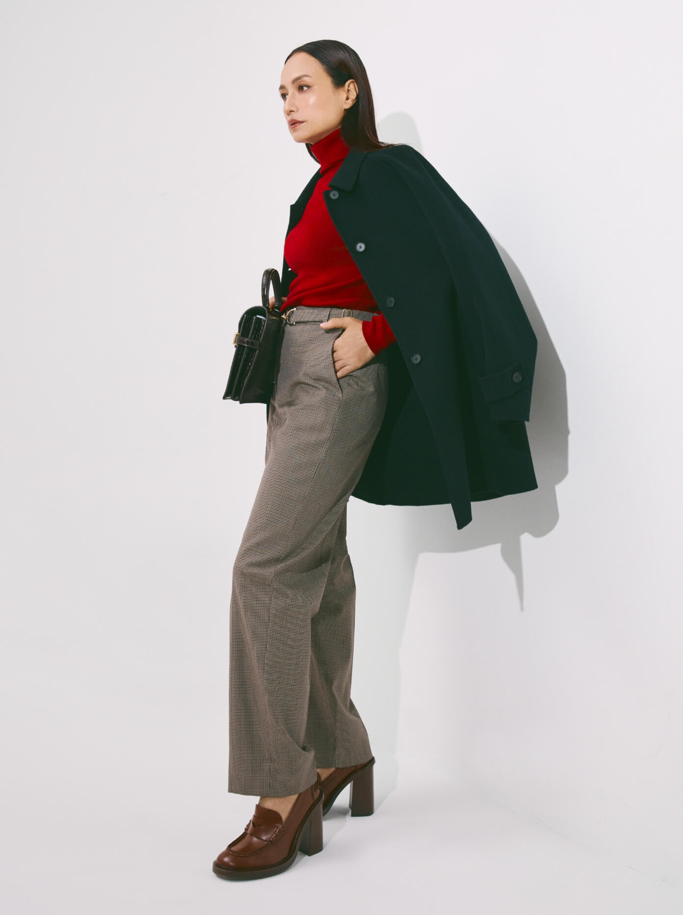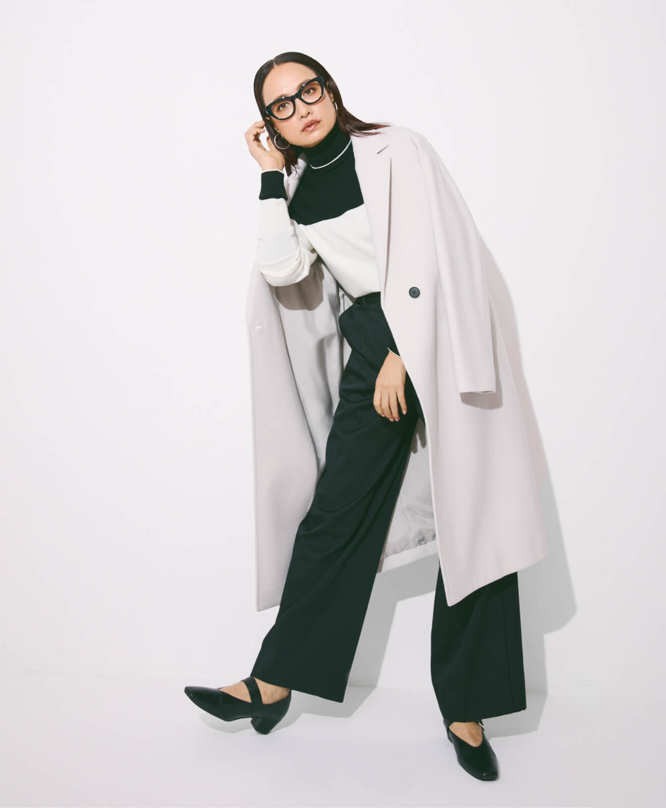 軽やかなリバーコートを主役にマント感覚で羽織り、