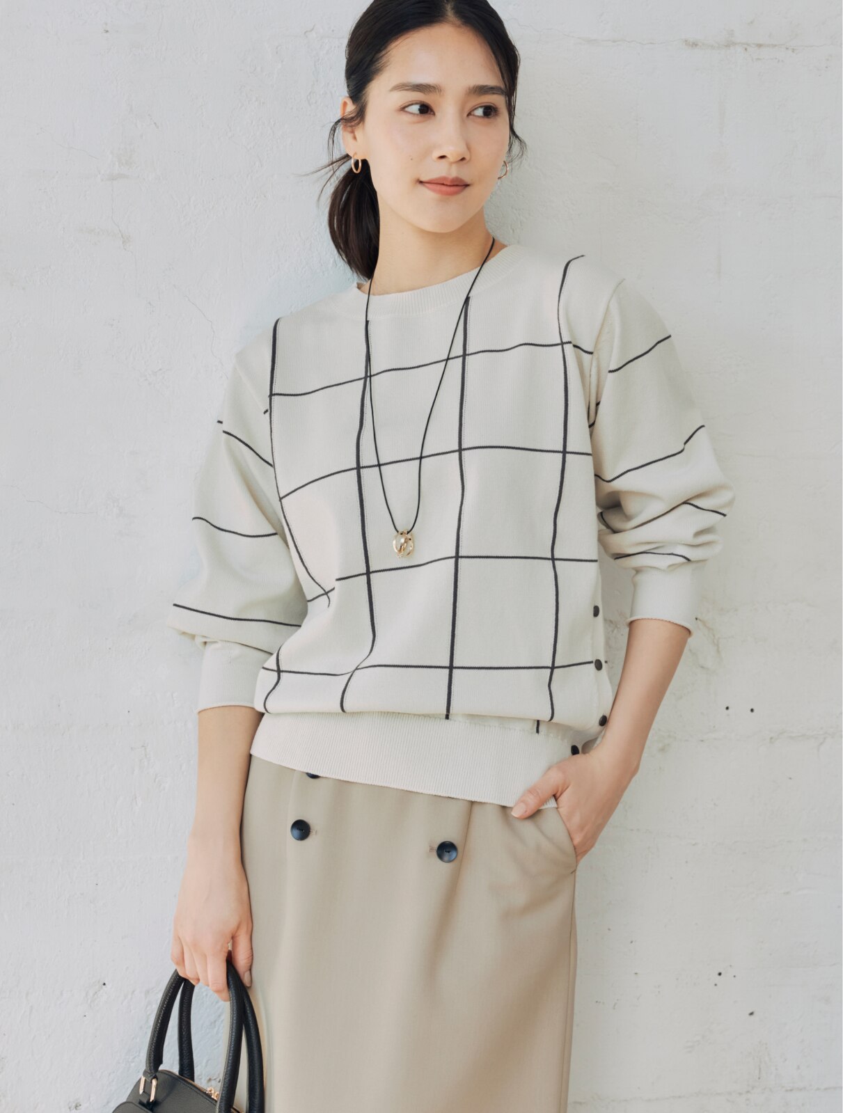 春色ニットを合わせるだけで、女性らしさも洒落感もたっぷり。