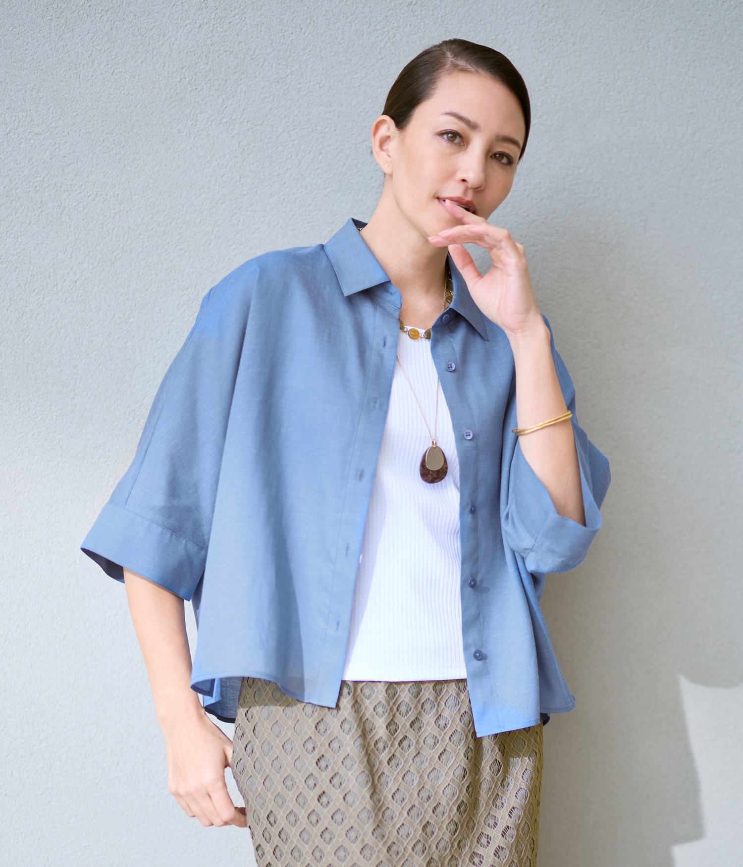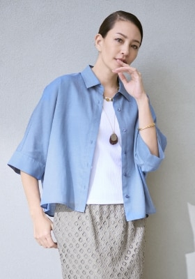 先染め織物産地、西脇地方で織り上げた風合い豊かなリネンシャツ。今年らしい短めのレングスでリラクシーな雰囲気に仕立てました。