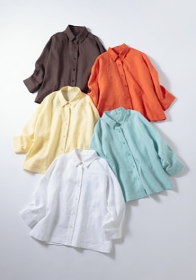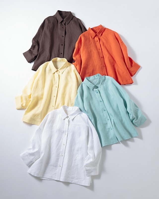 ゆったりめのシルエットで夏の羽織りにも重宝するリネンシャツは、フランスの老舗サフィラン社の高品質な亜麻をトルコの名門エセンテクス社で紡績・染色したリッチな素材感も魅力。