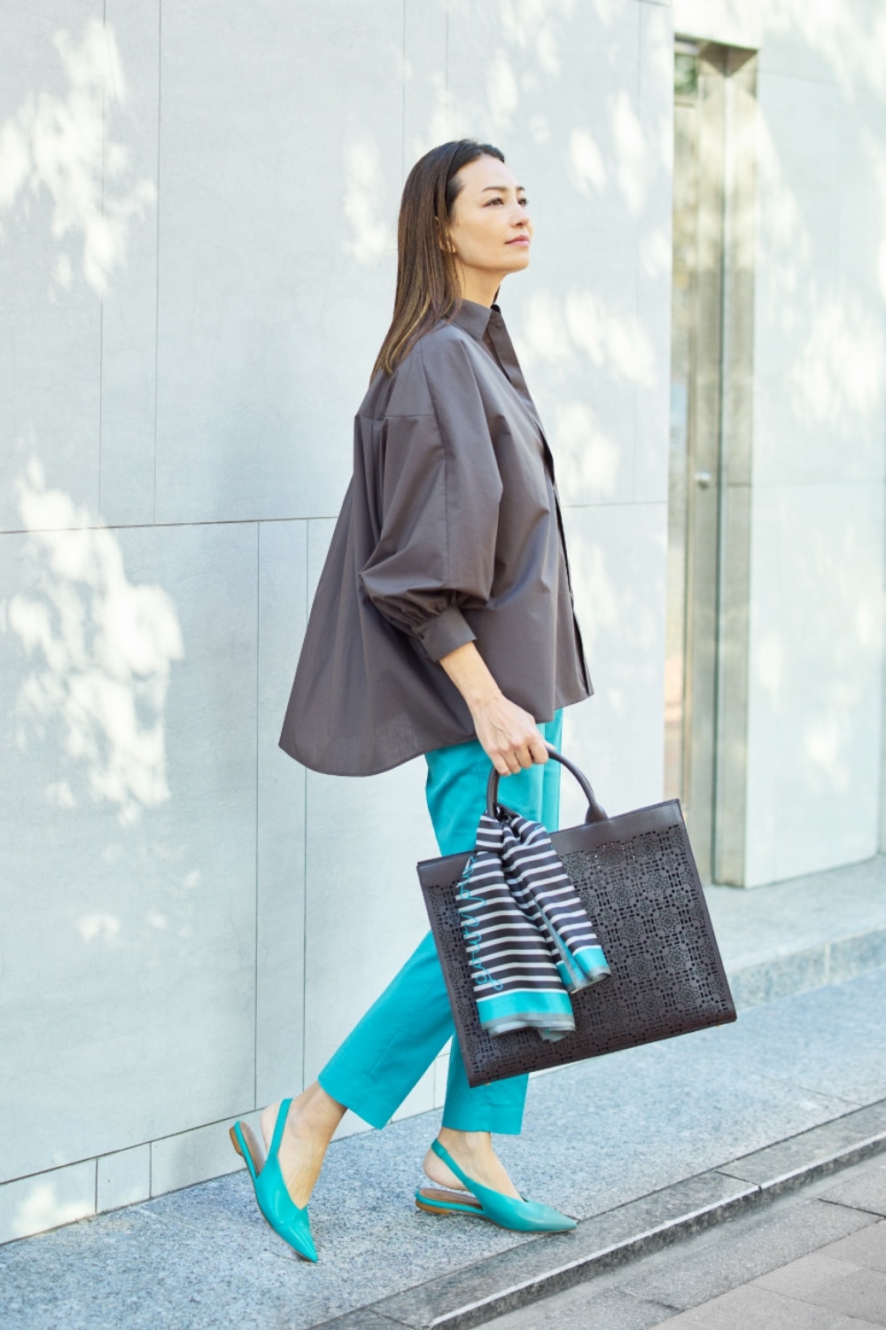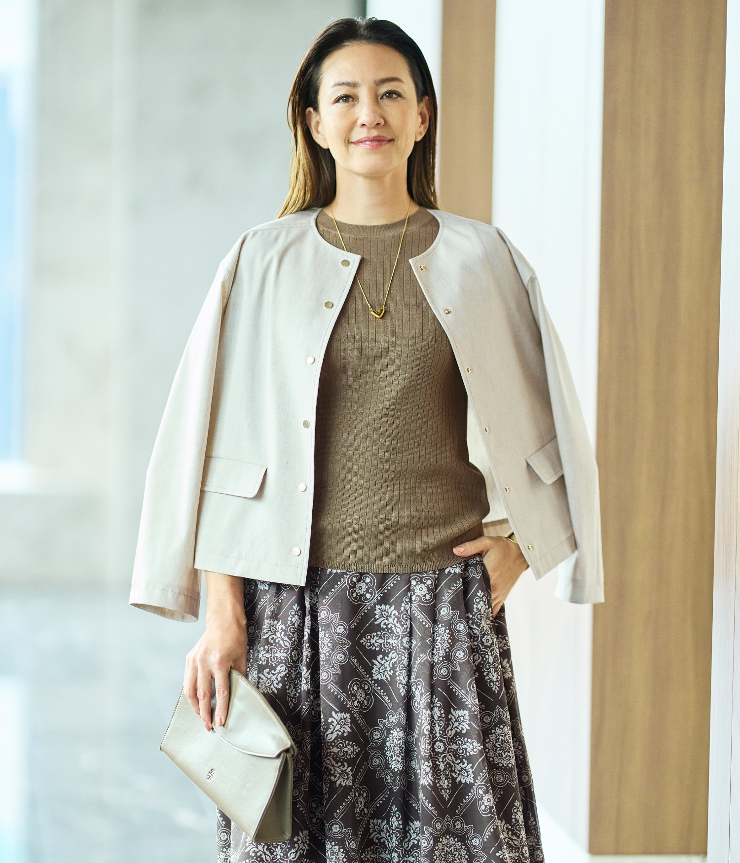 リラクシカルなシルエット、そして時には開放的なアースカラーを都会的に取り入れて。