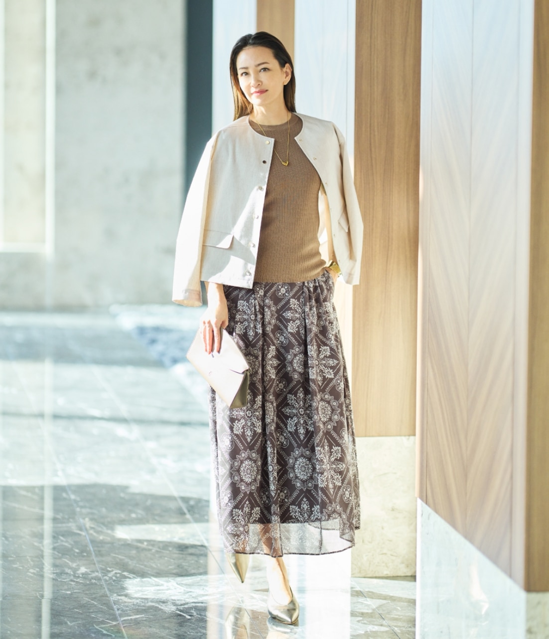 クロップド丈でパンツはもちろん分量のあるスカートも上品に。