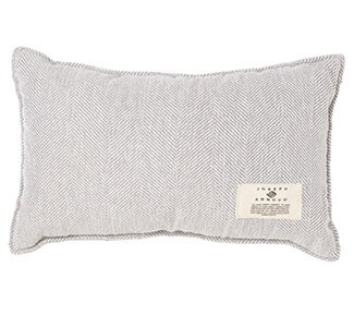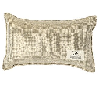 腰当てや背当てなどにも最適な枕型のクッション。トラッドなヘリンボーン柄の生地は、インテリアによく馴染むうえ、大人っぽい空間を演出します。