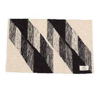 ス柄をあしらったラグ。丈夫なインド綿を使い、手織りすることでナチュラルな質感を生み出しています。