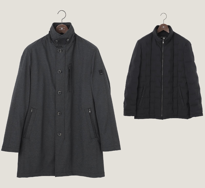ダークトーンのコートは、同系色でまとめればシャープな印象を演出可能。ライトグレーのカラーリングを選べば、冬場の着こなしにも爽やかさと清潔感を加えることができます。ストレッチが効いているため、シャツやニットはもちろん、ジャケットをインナーに合わせても窮屈さを感じさせません。