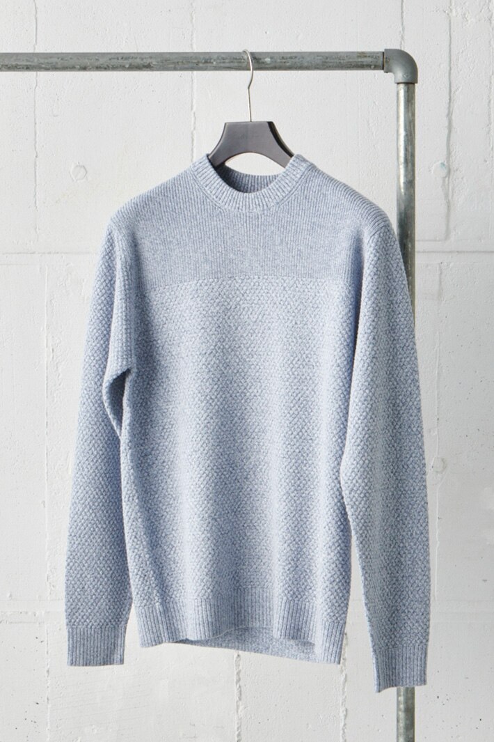 15年以上携わるデザイナーも加入以前からあるほど、長く愛されている素材メランジ感を表現する為、性質の違う糸を組み合わせ、ふっくらとしたバルキー糸で軽く柔らかく仕上げています。同一糸を使えない時代を乗り越え、特徴を守りアップデート続ける上質素材。