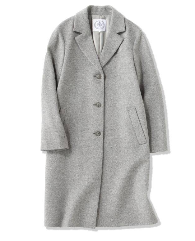 上質な肌触り、微光沢が特徴の上質なメルトン素材のウールコート。