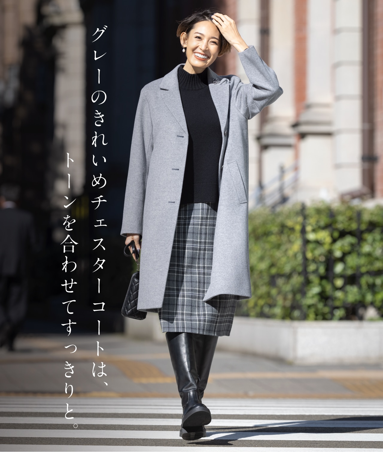 ゆとりのあるシルエットながら、シャープに見えるよう襟を細めに作るなど、細部までこだわったチェスターコート。厚手のニットなども着こめるサイズ感で、きれいめからカジュアルまで様々なスタイリングに合わせられます。