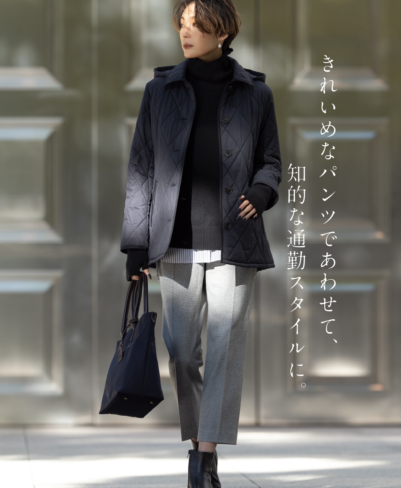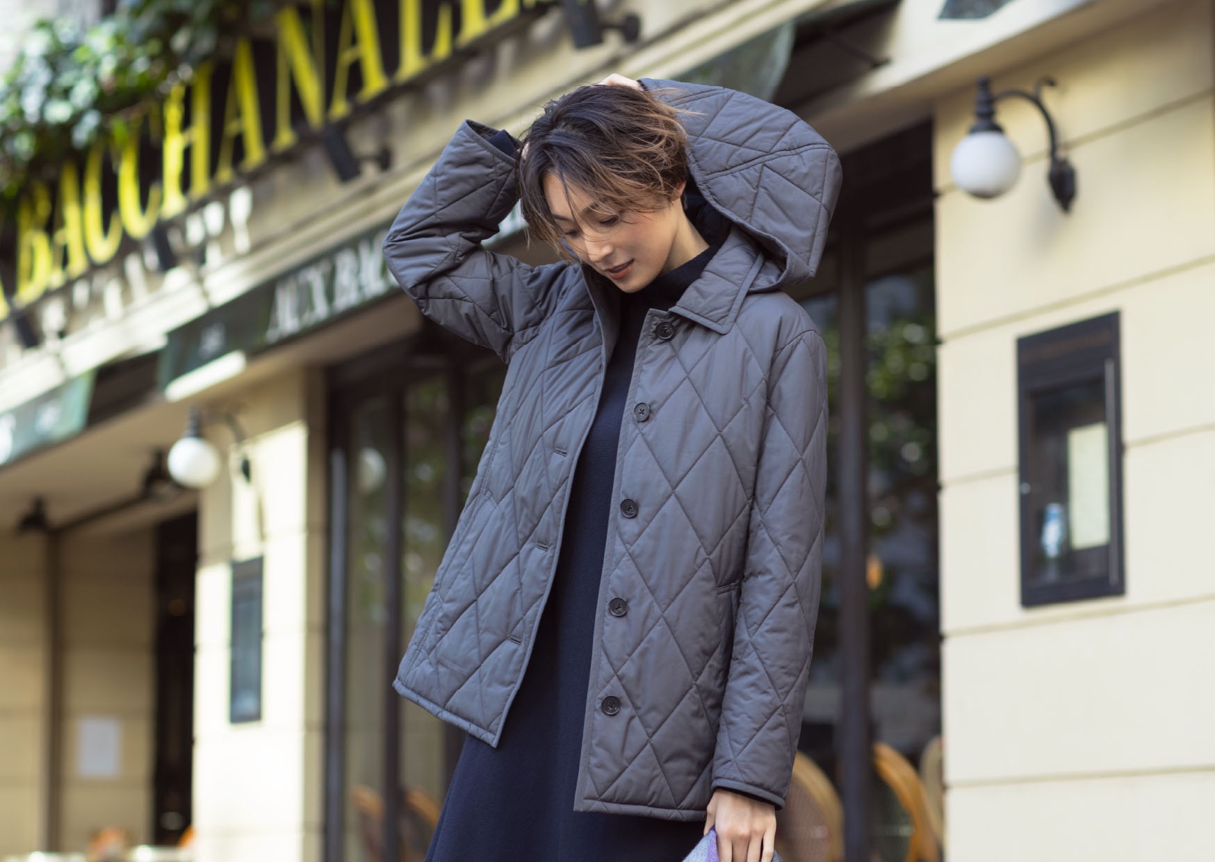 流行に左右されず、長く愛用できるベーシックなキルティングコート。抗菌・防臭、消臭、発熱・蓄熱と機能性のある中綿を使用しています。フードも取り外し可能でスタイリングに合わせて着こなしに変化をつけられるのもポイント。
