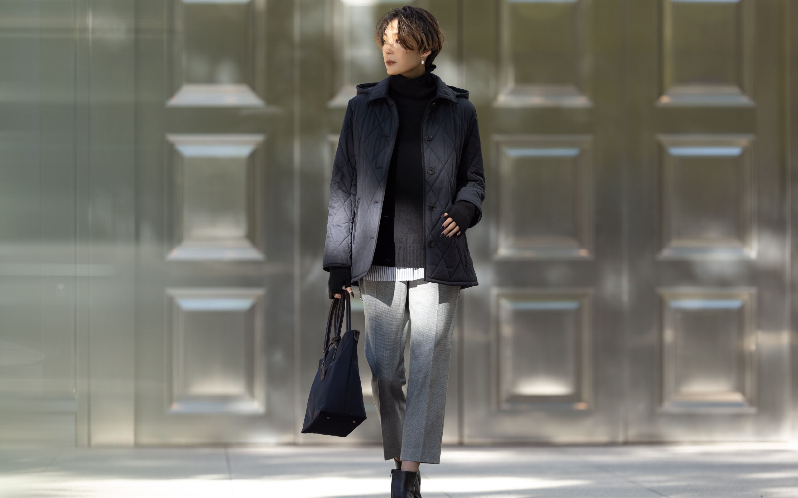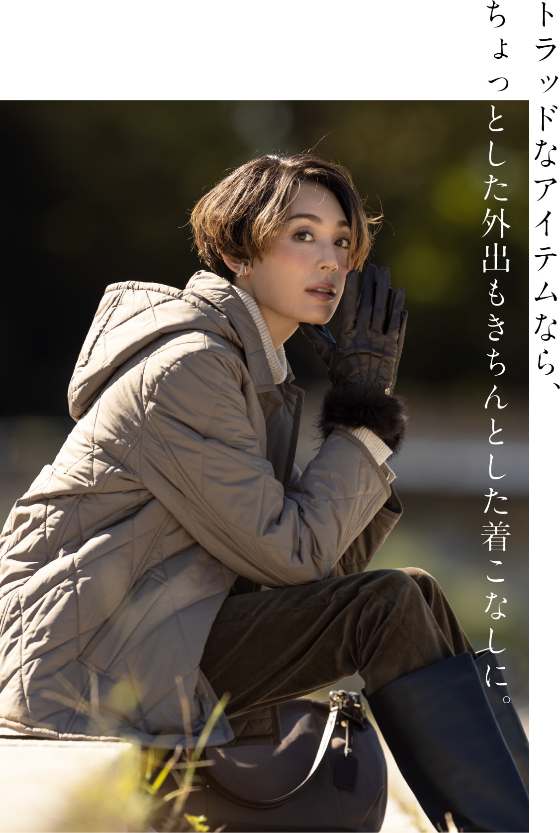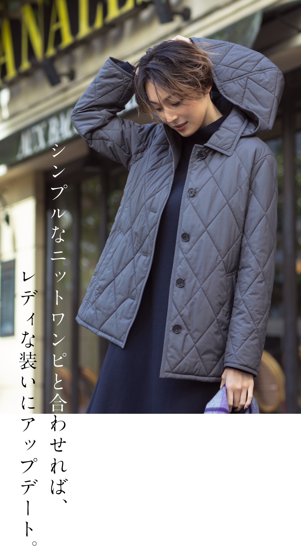 軽い着心地とトラッドなデザインで、流行に左右されず長いシーズン使用できる、キルティングコート
