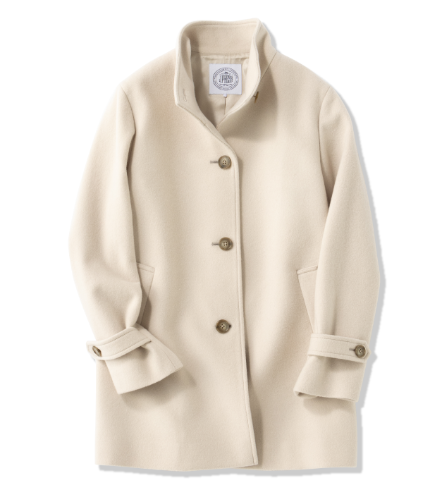 ややカジュアルな素材感が着こなしの幅を広げます。スタンドカラー、ミドル丈ノーカラー、ステンカラーの3型で展開しています。