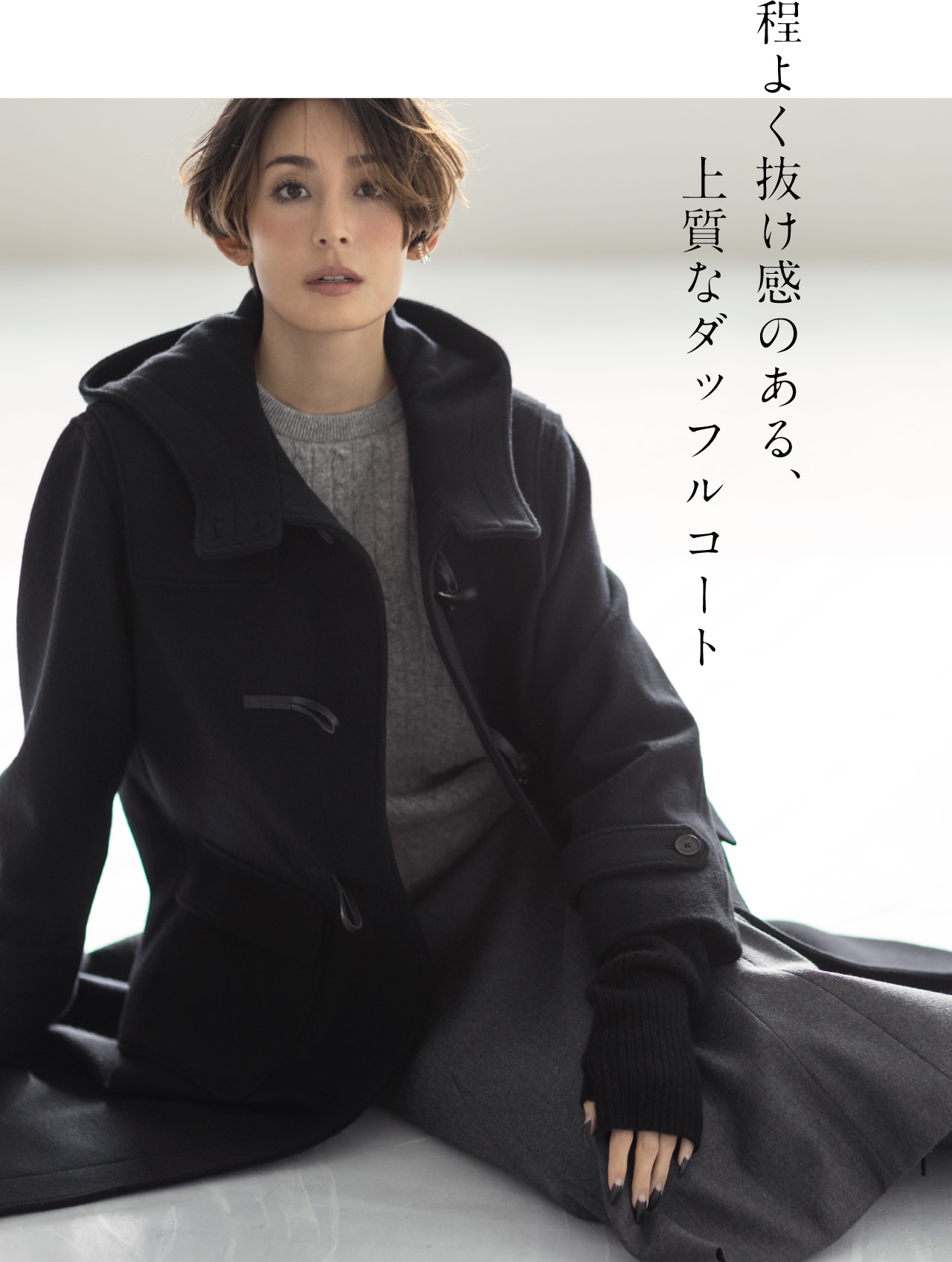 トラッドには欠かせないダッフルコートに女性らしさをプラスしたこだわりのアイテム。程よいオーバーサイズ感が適度な抜け感を演出してくれます。