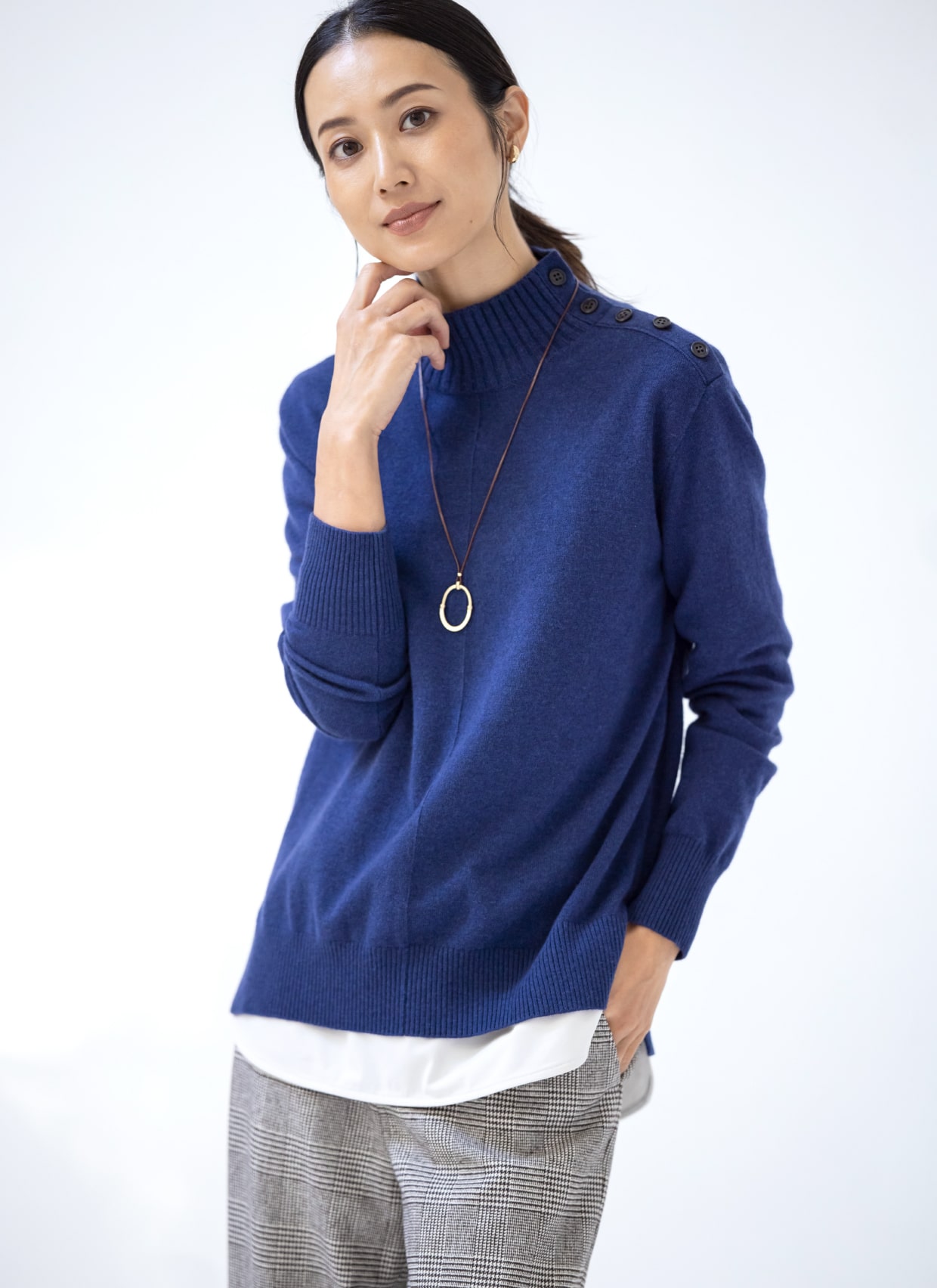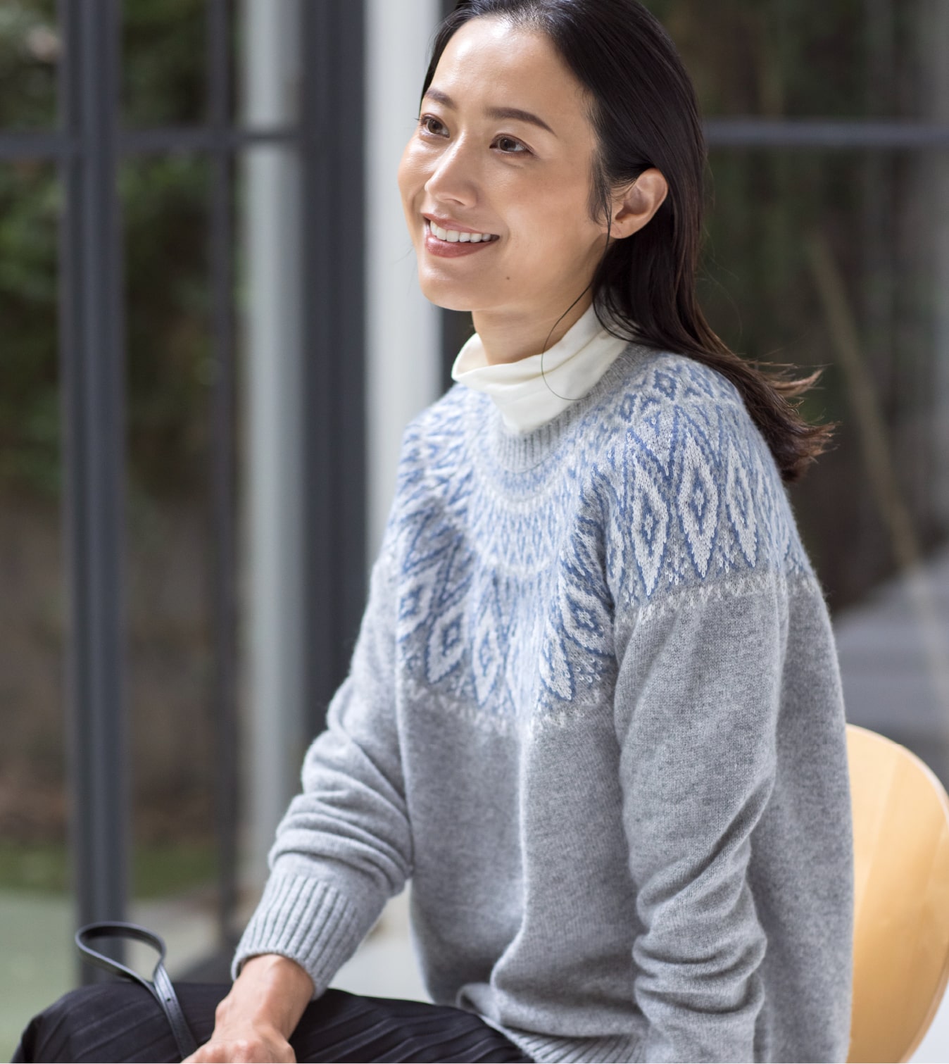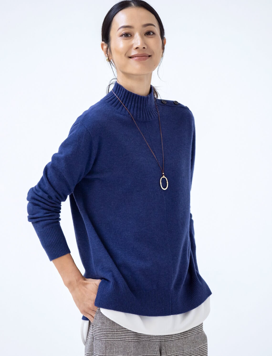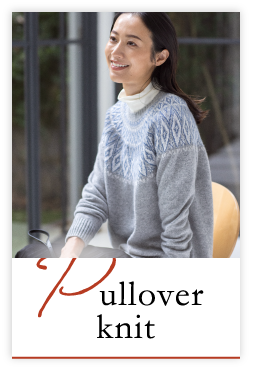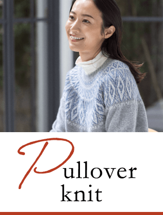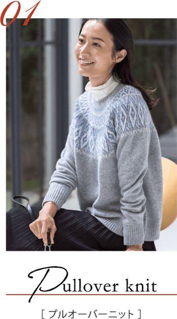 デイリー使いを意識したオリジナルパターンがポイント。すっきりとしたラウンドネックでコートインにも着映える一枚。