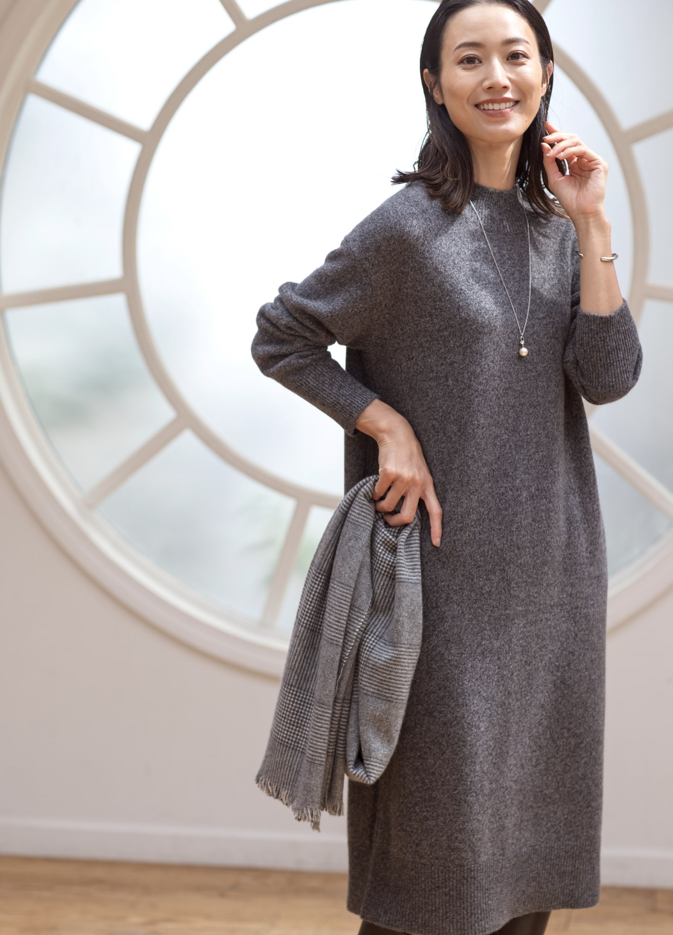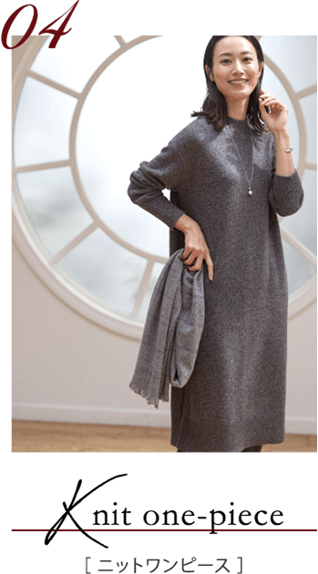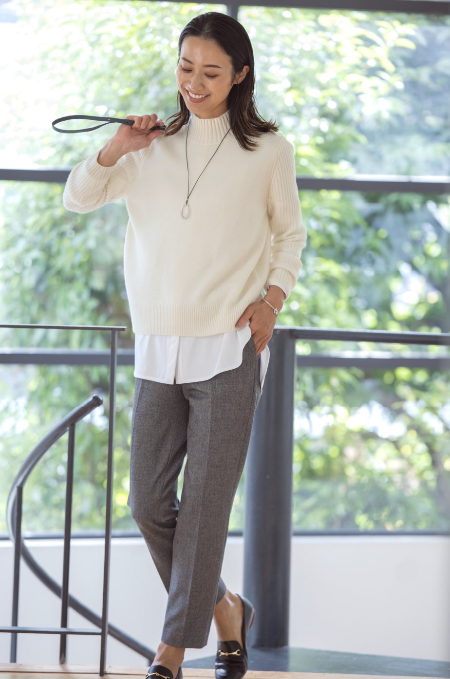 ニットならではのストレスフリーな着心地で、こなれ感のある大人カジュアルスタイルを楽しめる一枚。