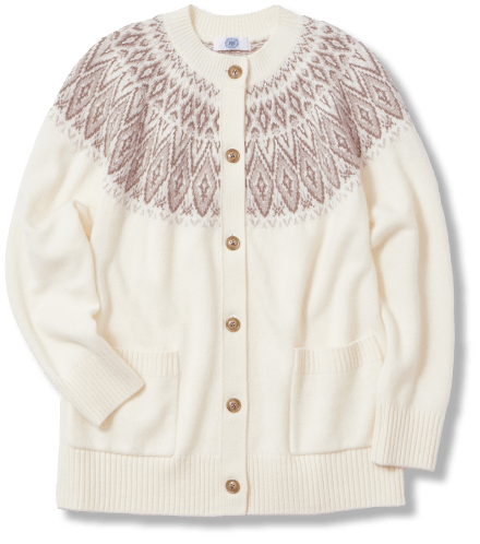 ふっくらとしたアラン柄で羽織るだけでコーディネートのアクセントに。パンツにもスカートにも合わせやすいレングスで、汎用性のある1枚。
