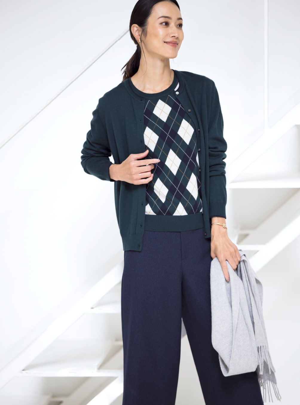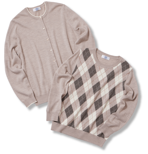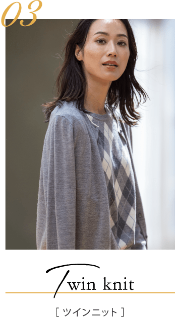 今年らしくブラッシュアップした配色がポイントで、ツインセットでもそれぞれ単品でも着まわせ、きれいめお出かけスタイルやオフィスシーンに大活躍。