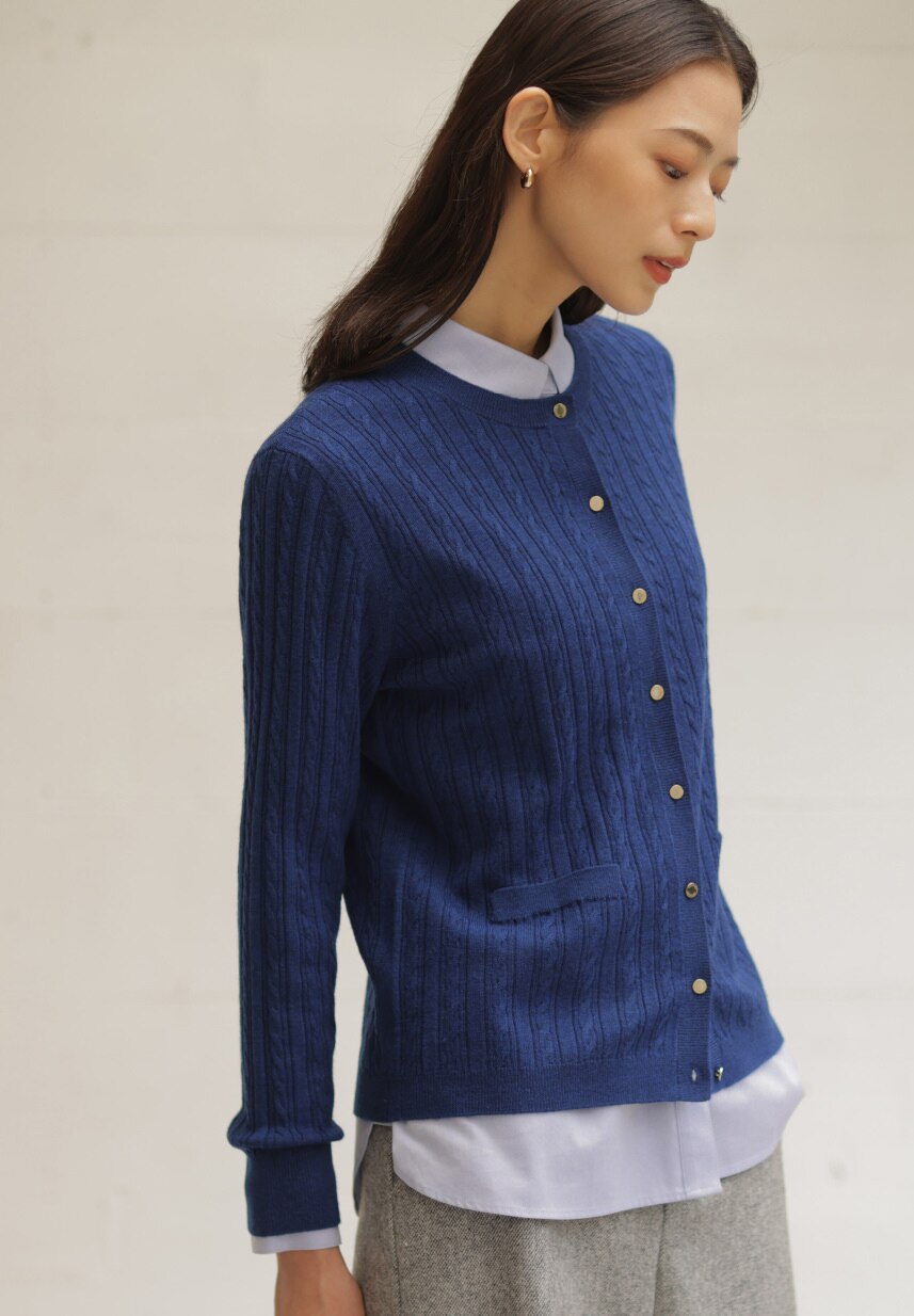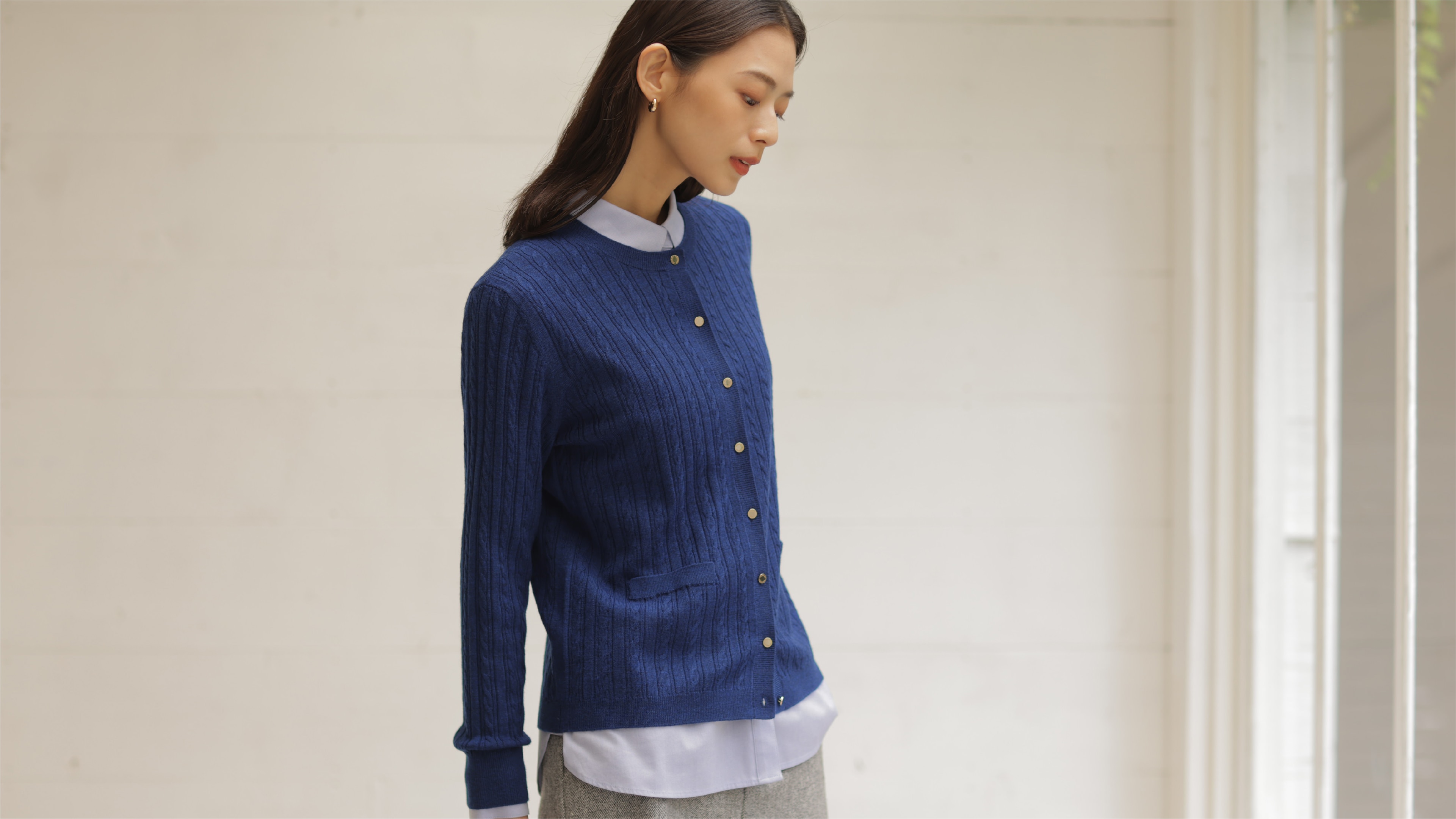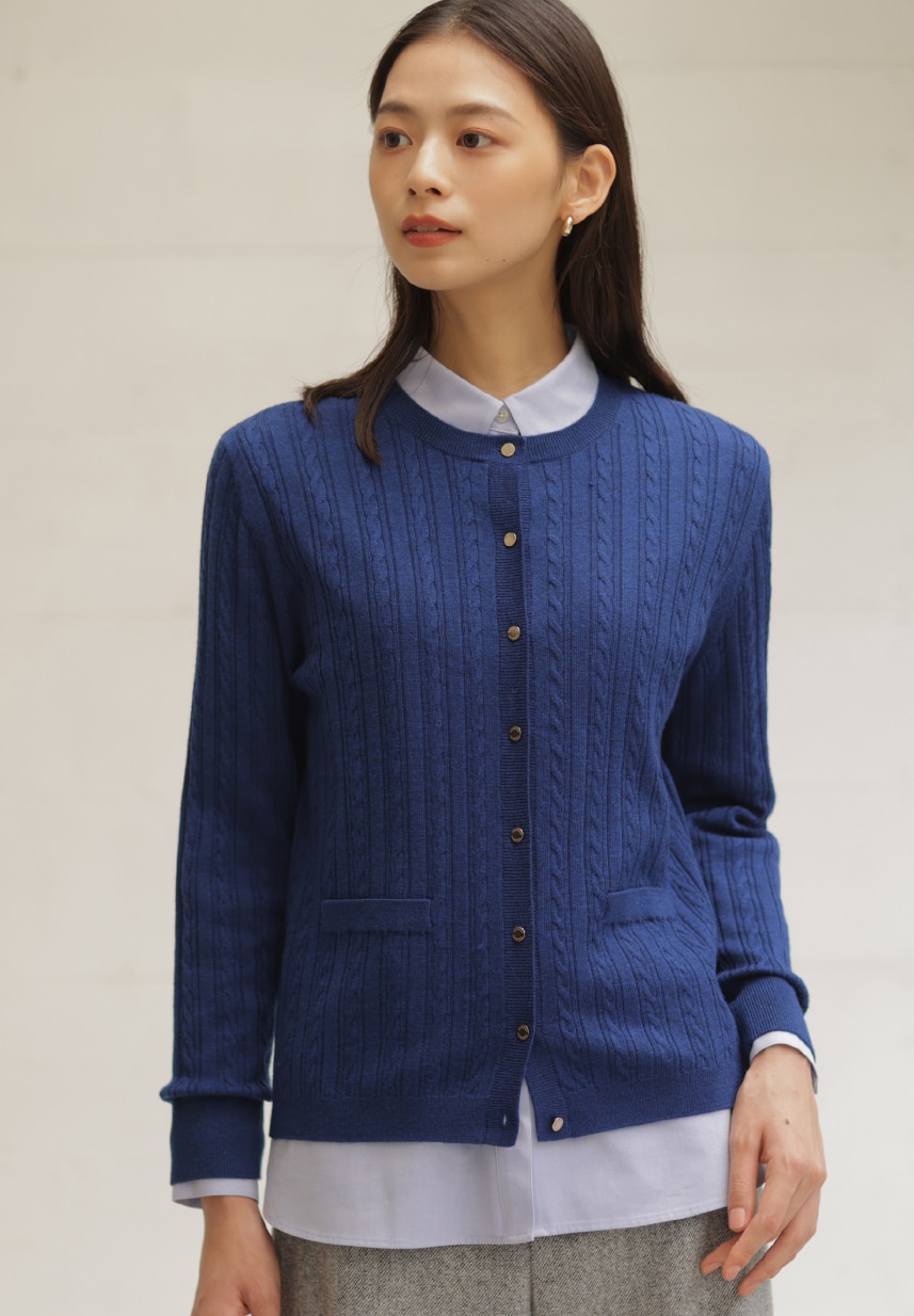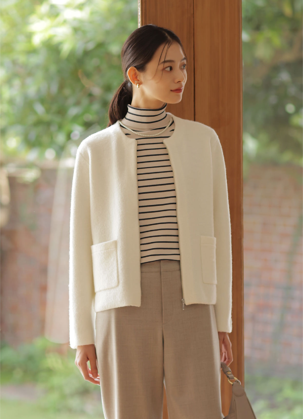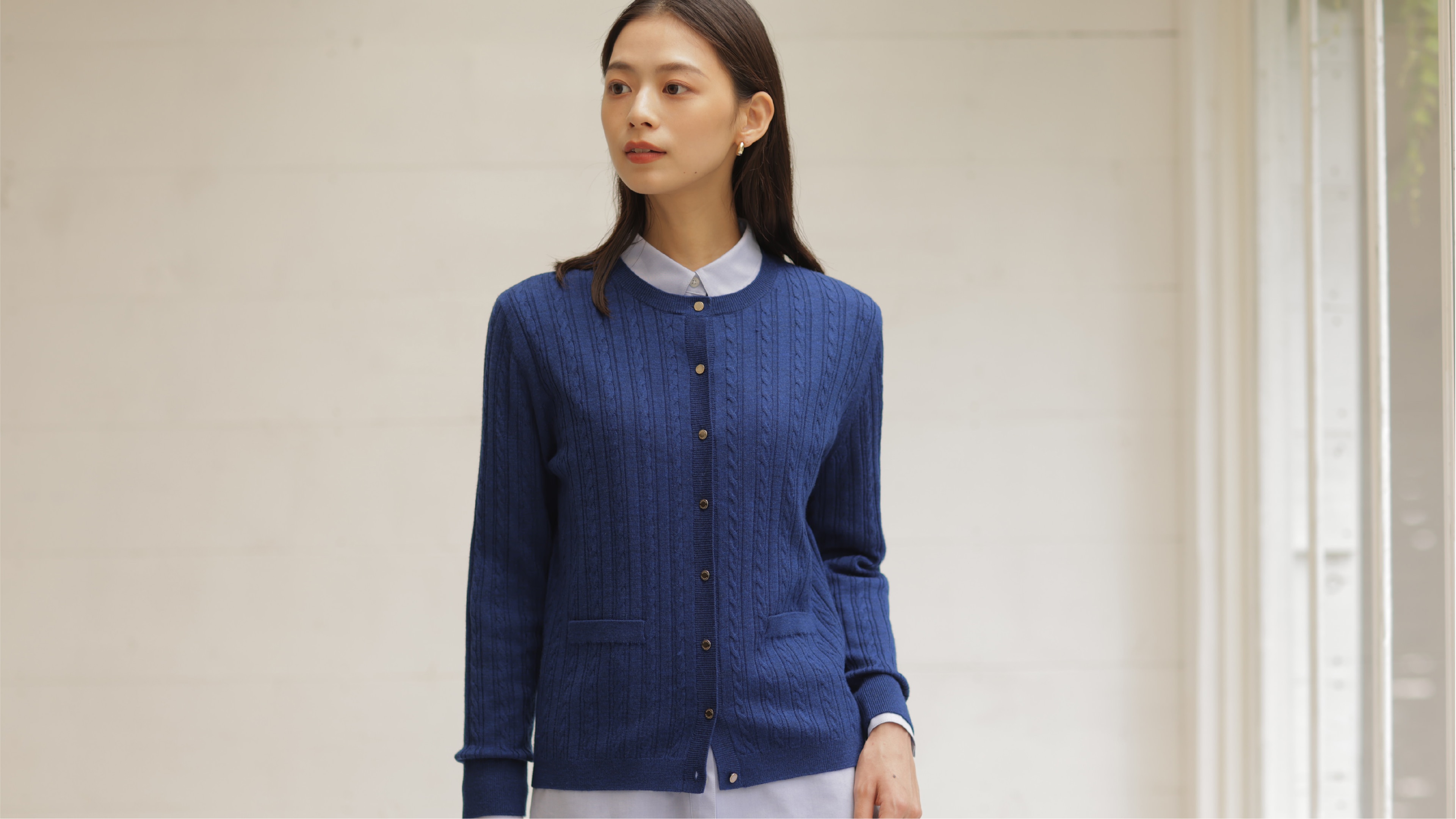 着こなしの鮮度が上がる、ポロ襟付きカーディガン。タック入りワイドパンツと合わせれば、大人が似合う旬なスタイルに。