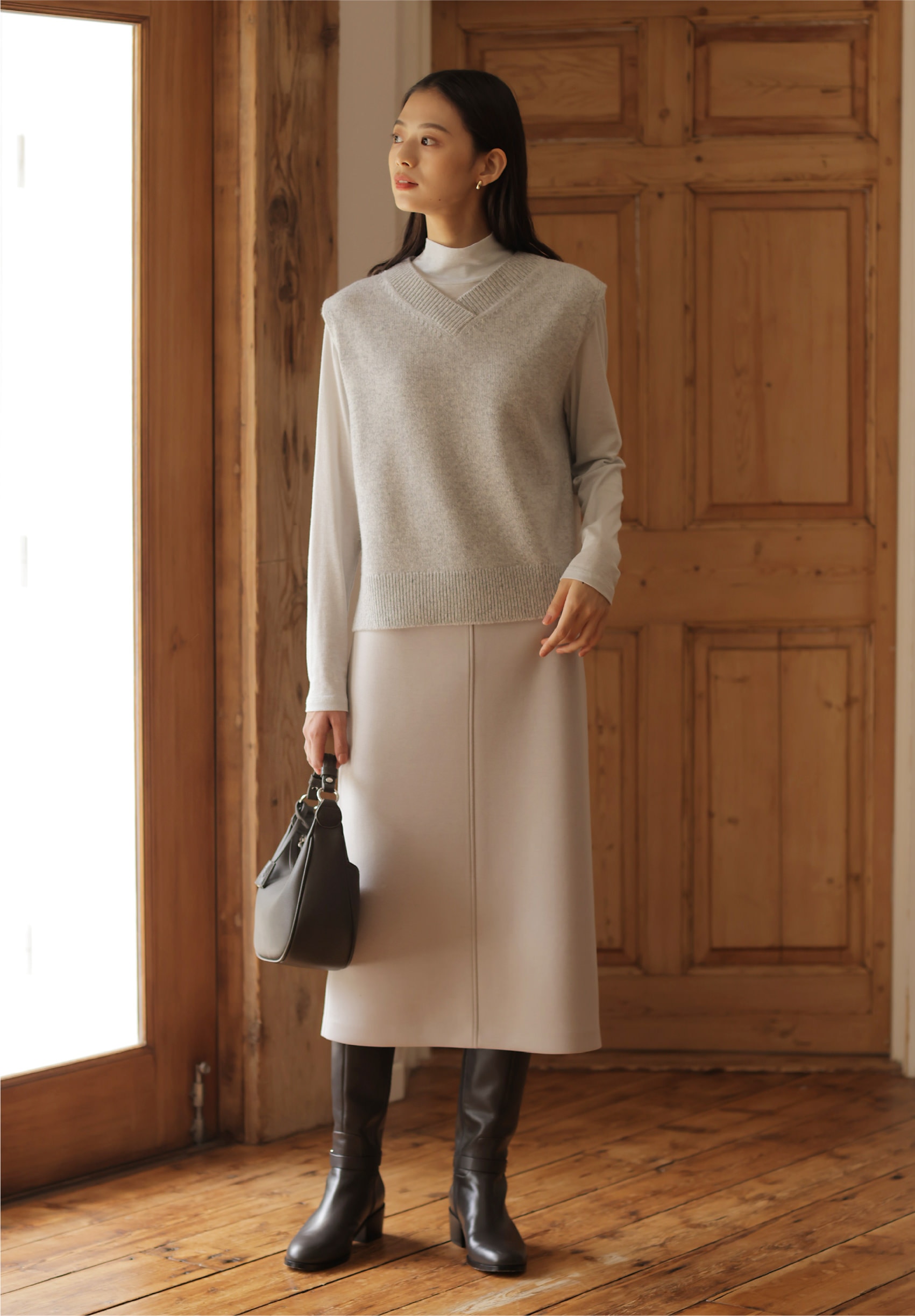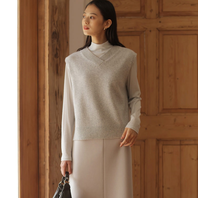 おしゃれ感度の高い、ミックス感のあるニットベスト。重ねるだけでスタイリッシュに決まる、秋冬のワードローブに加えておきたいアイテム。