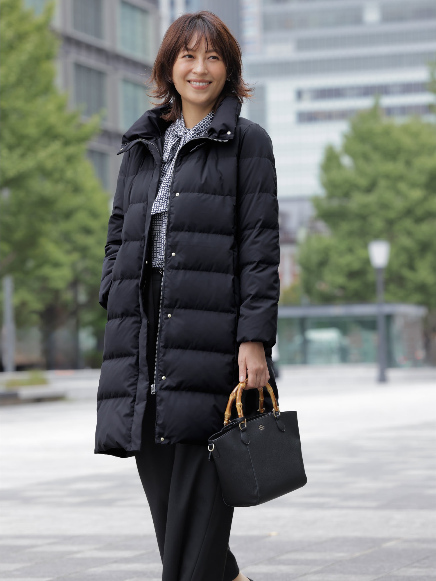 寒い日の通勤もダウンコートがあれば安心。