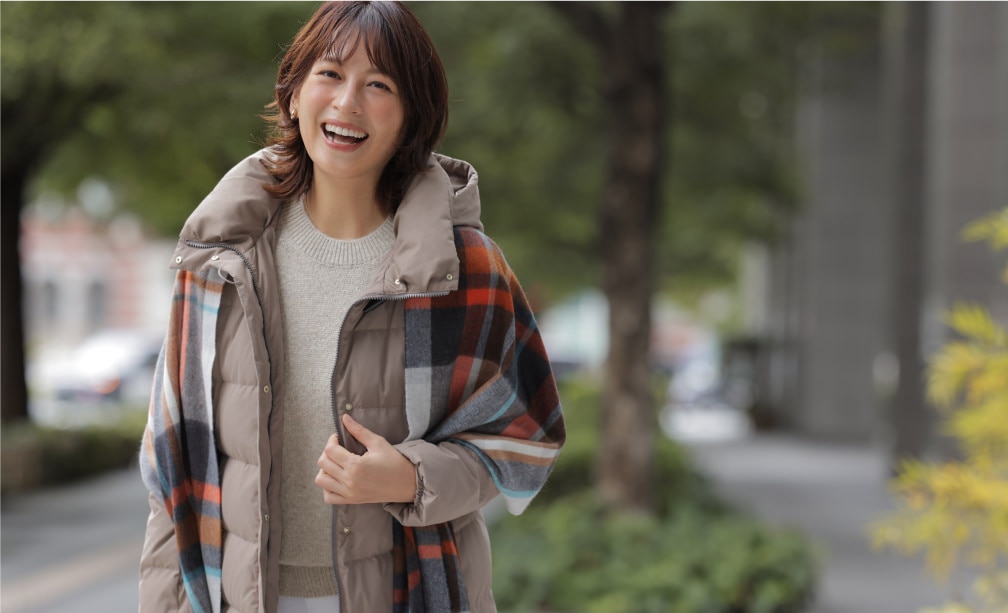 きれいめにもカジュアルにも合わせやすい、万能なミドル丈のダウン。軽くて暖かく優しい着心地が特徴で、毎日着ていたくなるアイテム。