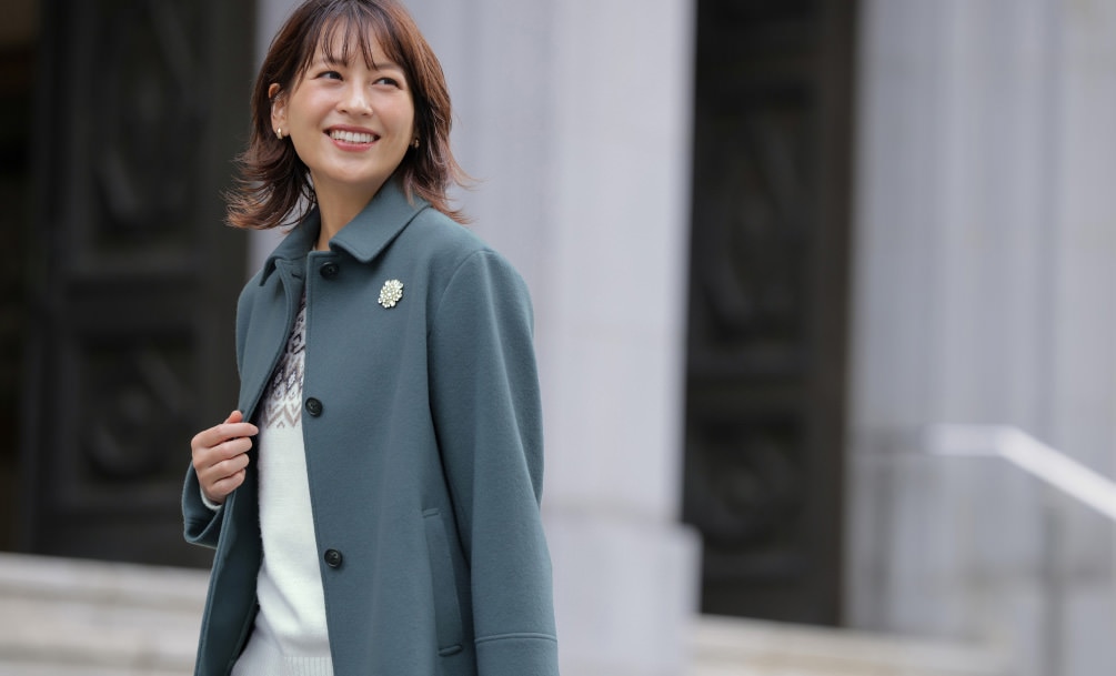 インナーは華やかさをプラスしつつ、アウターは落ち着いたカラーで品よくまとめる。