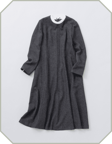 上品な襟付きワンピースに煌めくラメで華やかさを添えて
