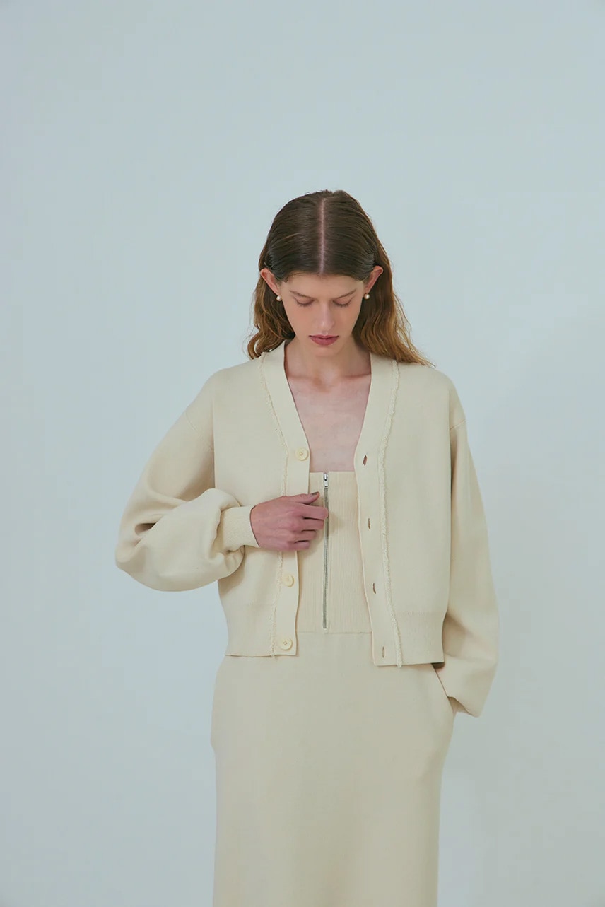 昨年も人気だったカーディガン。今年はほんの少しだけサイズ感をコンパクトにし、さらにフロントにフリンジをあしらいアクセントに。