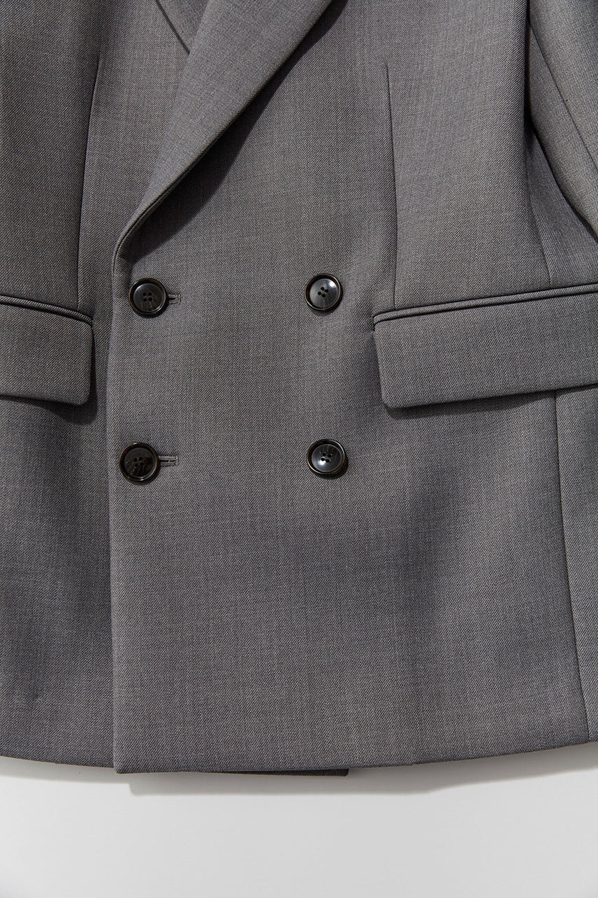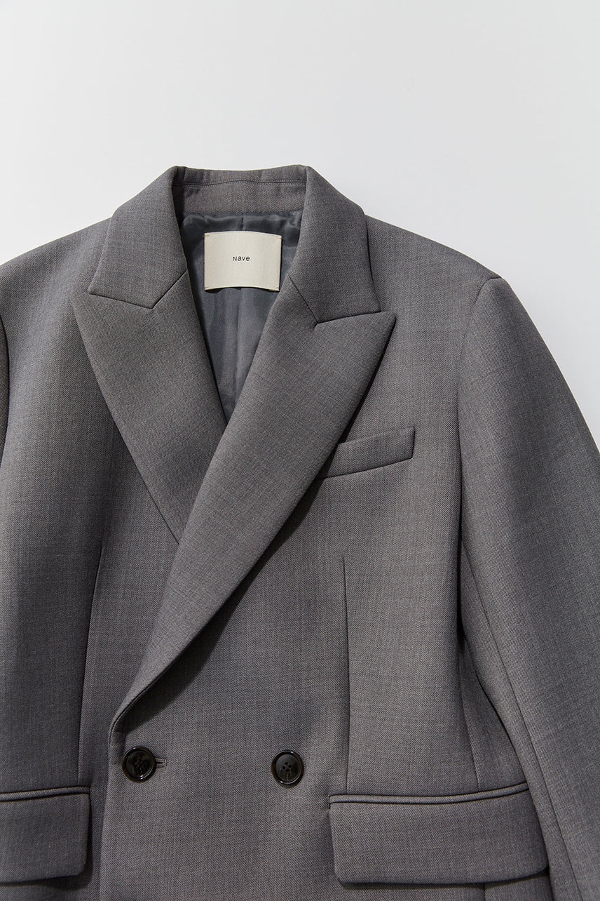 たっぷりとしたダブル合わせと少し長めの丈感で、デザインとしてはジャケットでありながらアウター感覚で羽織れる仕上がり。