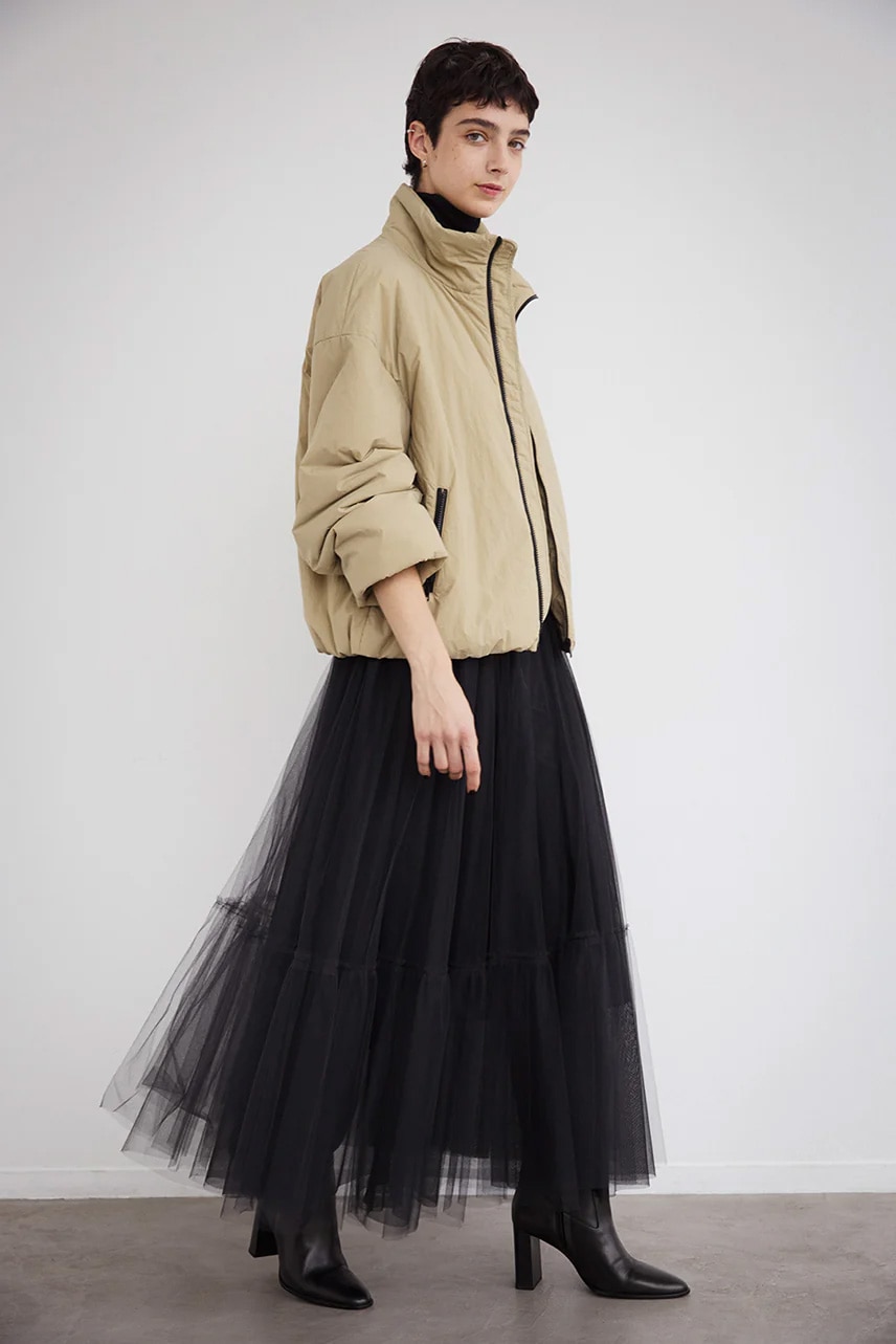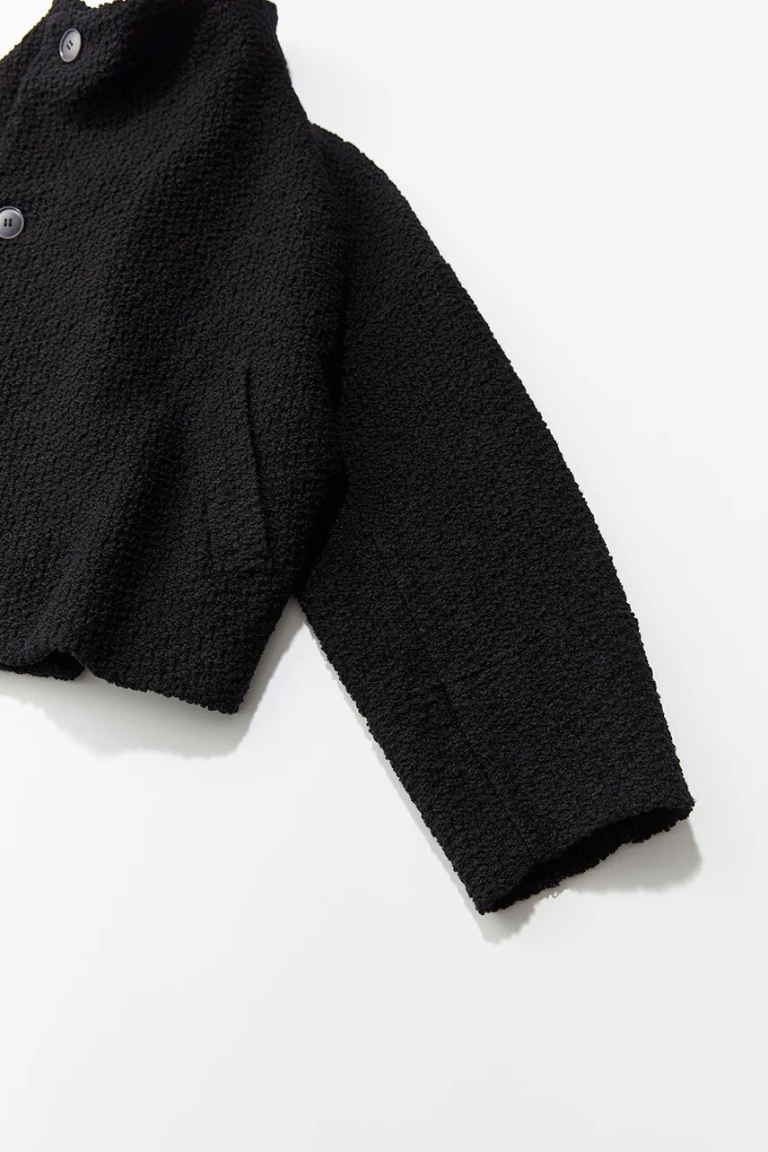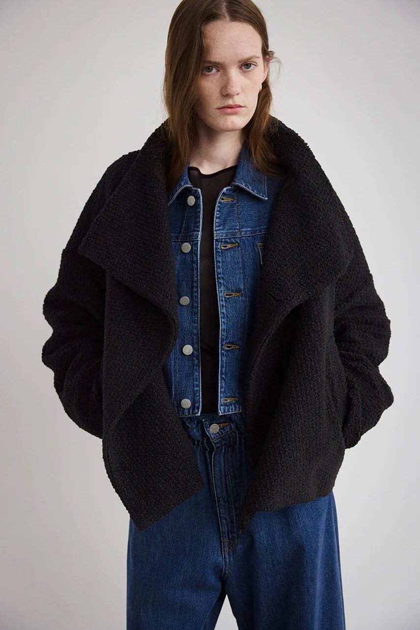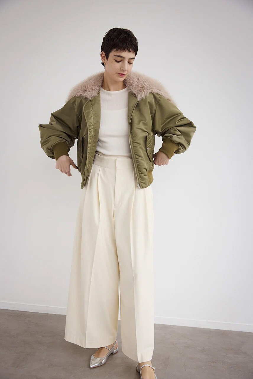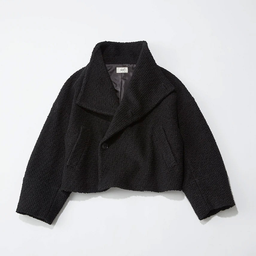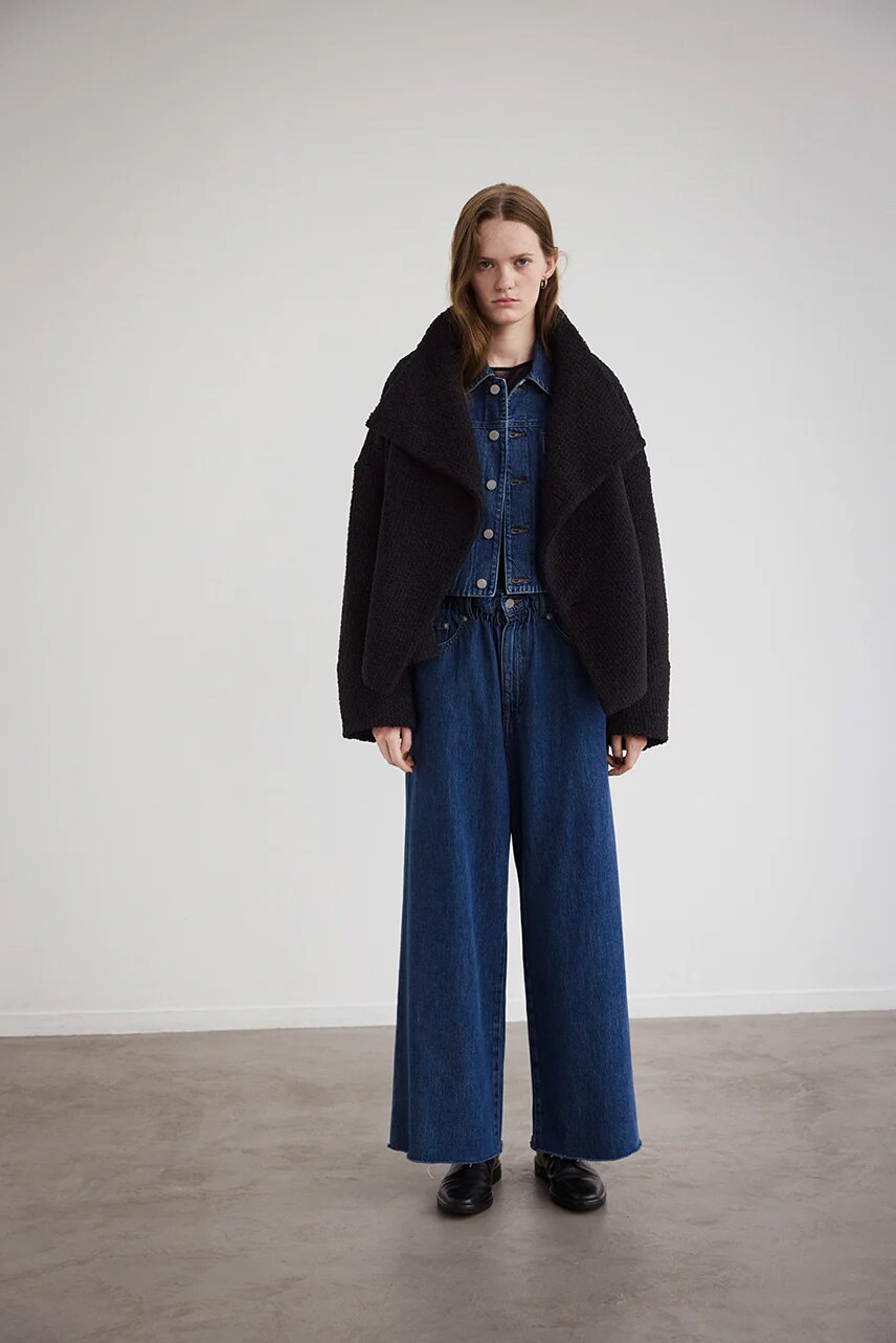 幅のあるアームとゆったりとした身頃、コンパクトな丈感のバランスが絶妙。さらりと羽織るだけでムードのある着こなしが完成するように、ディテールを工夫しています。