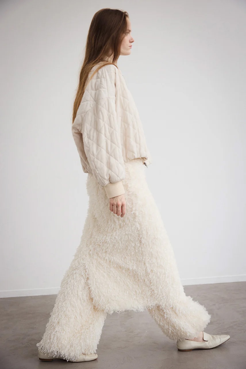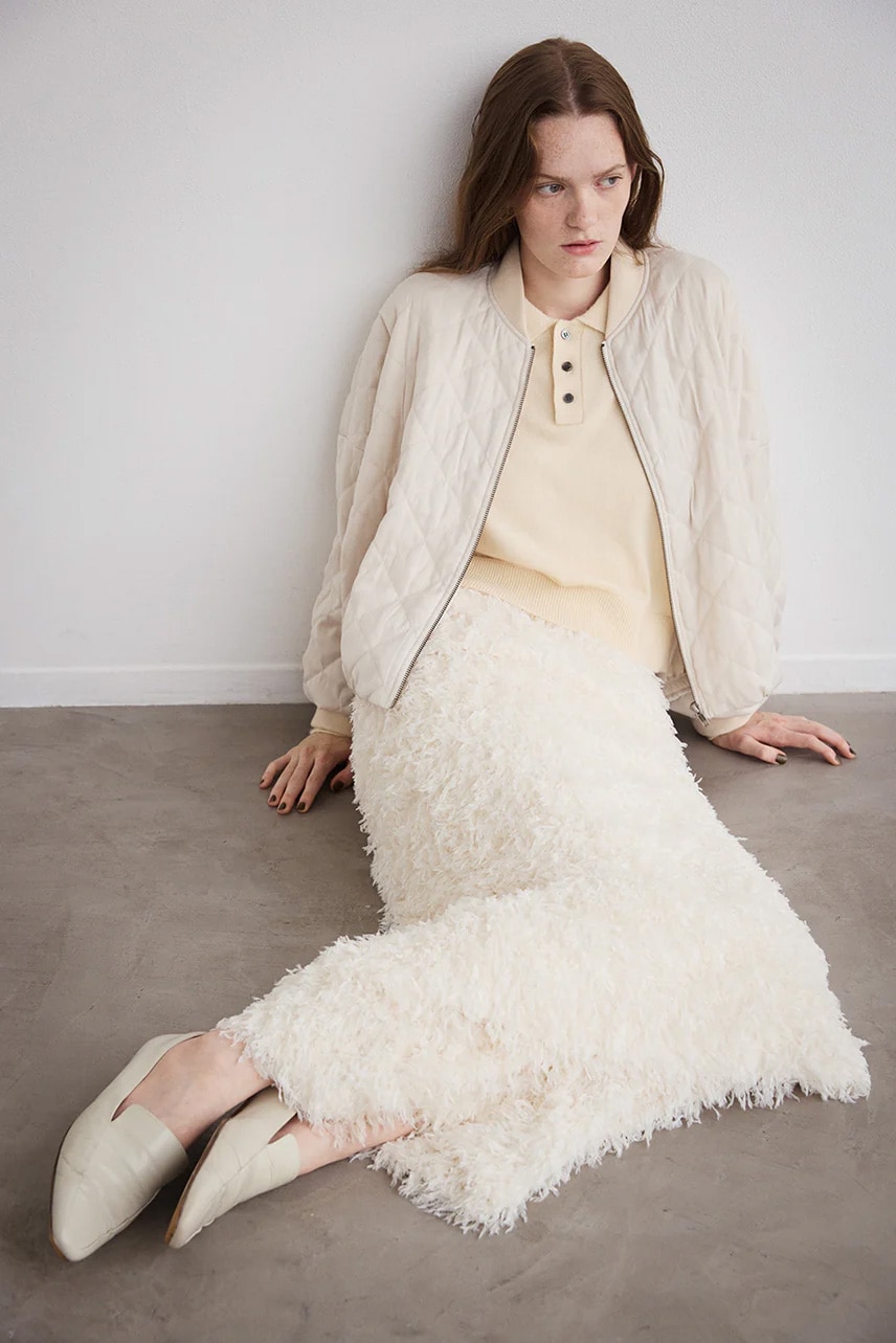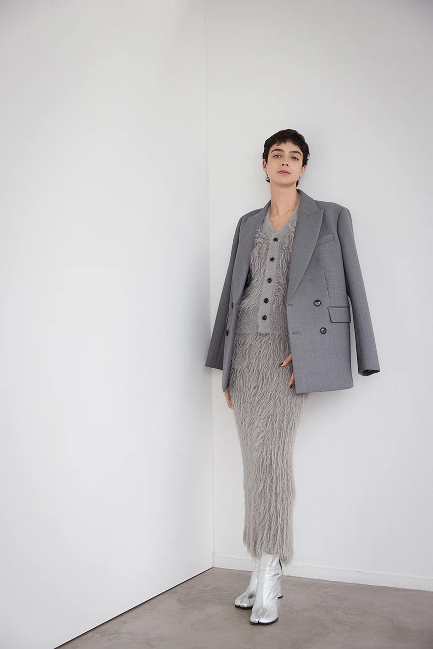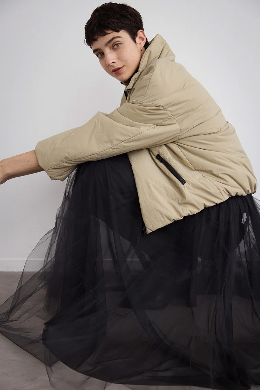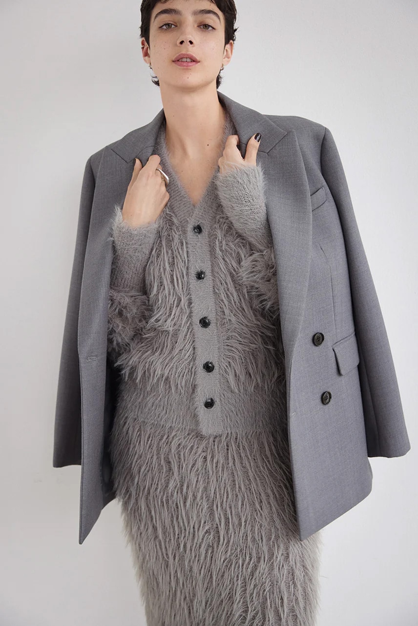 幅のあるアームとゆったりとした身頃、コンパクトな丈感のバランスが絶妙。さらりと羽織るだけでムードのある着こなしが完成するように、ディテールを工夫しています。