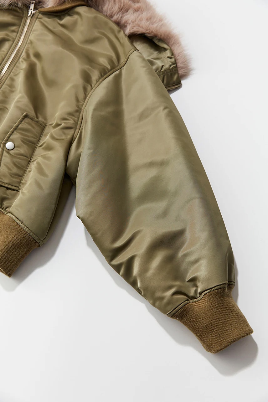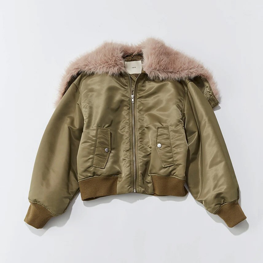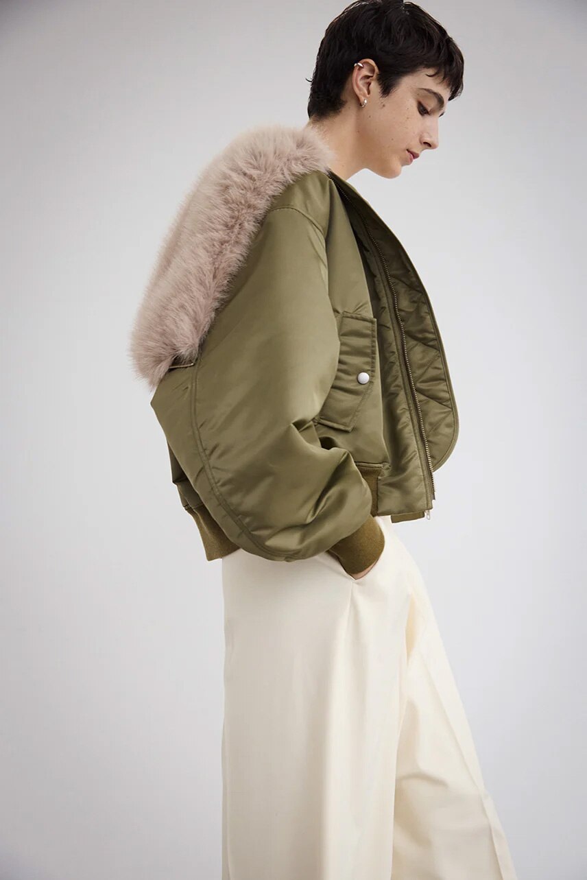 大胆にファーをあしらった襟もとは、中央のファスナーを開けてショールカラーに、ファスナーを閉じればフードにもなる2WAY仕様。さらにフード自体の取り外しもできるので、着こなしに応じてアレンジできるのが魅力です。