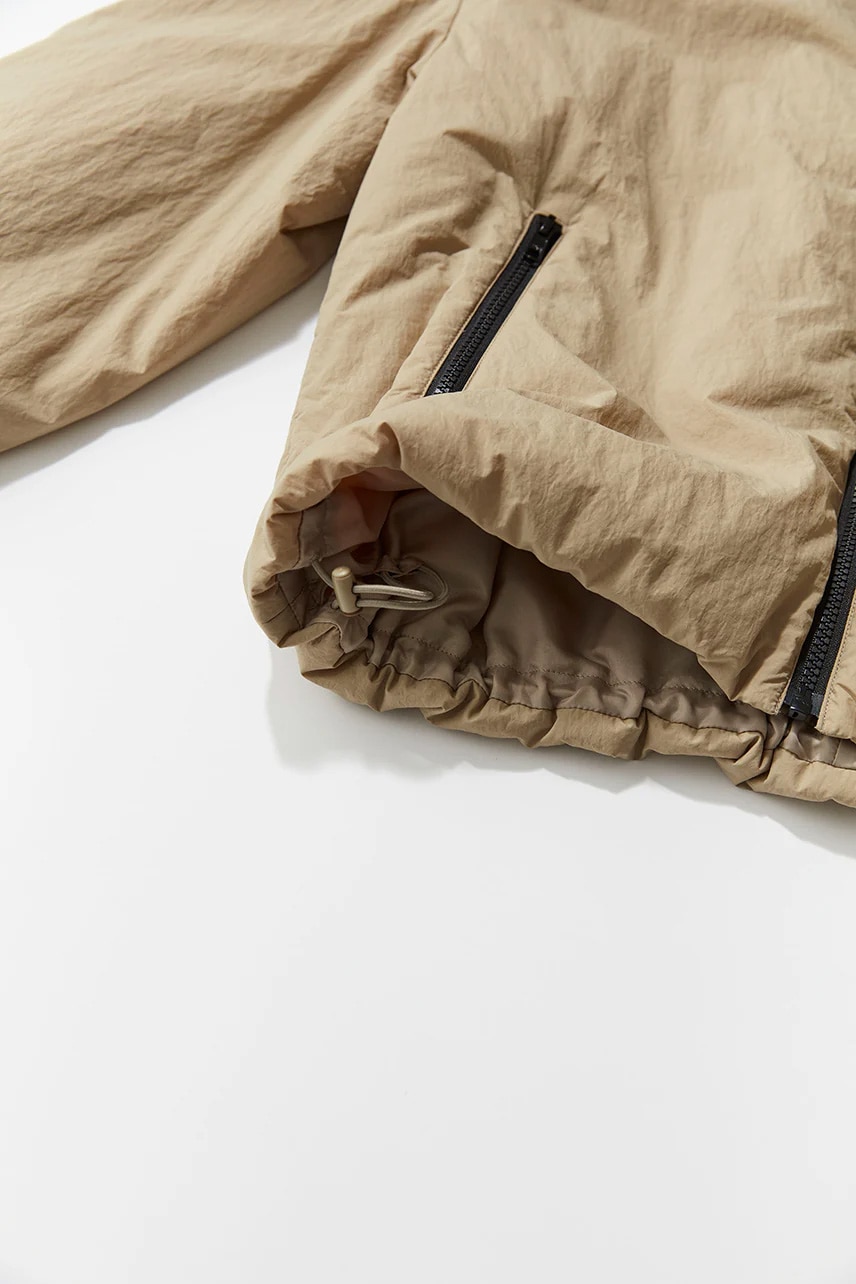 裾の内側にアジャスターが付いているのでシルエットや丈感の調節が可能。ぎゅっと絞ってコンパクトなバランスで着るのもおすすめです。