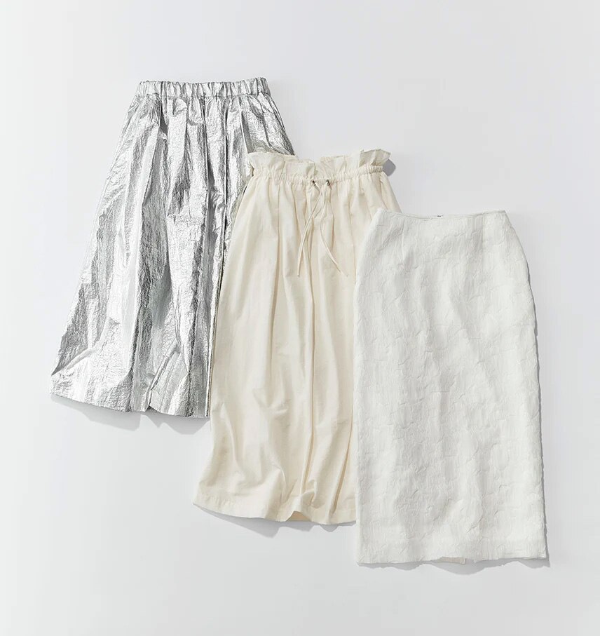 素材感とディテールにこだわったNaveの主役級スカートとモードなシルエットで美脚がかなうReNAVEのパンツが、暑い季節の救世主になってくれる!