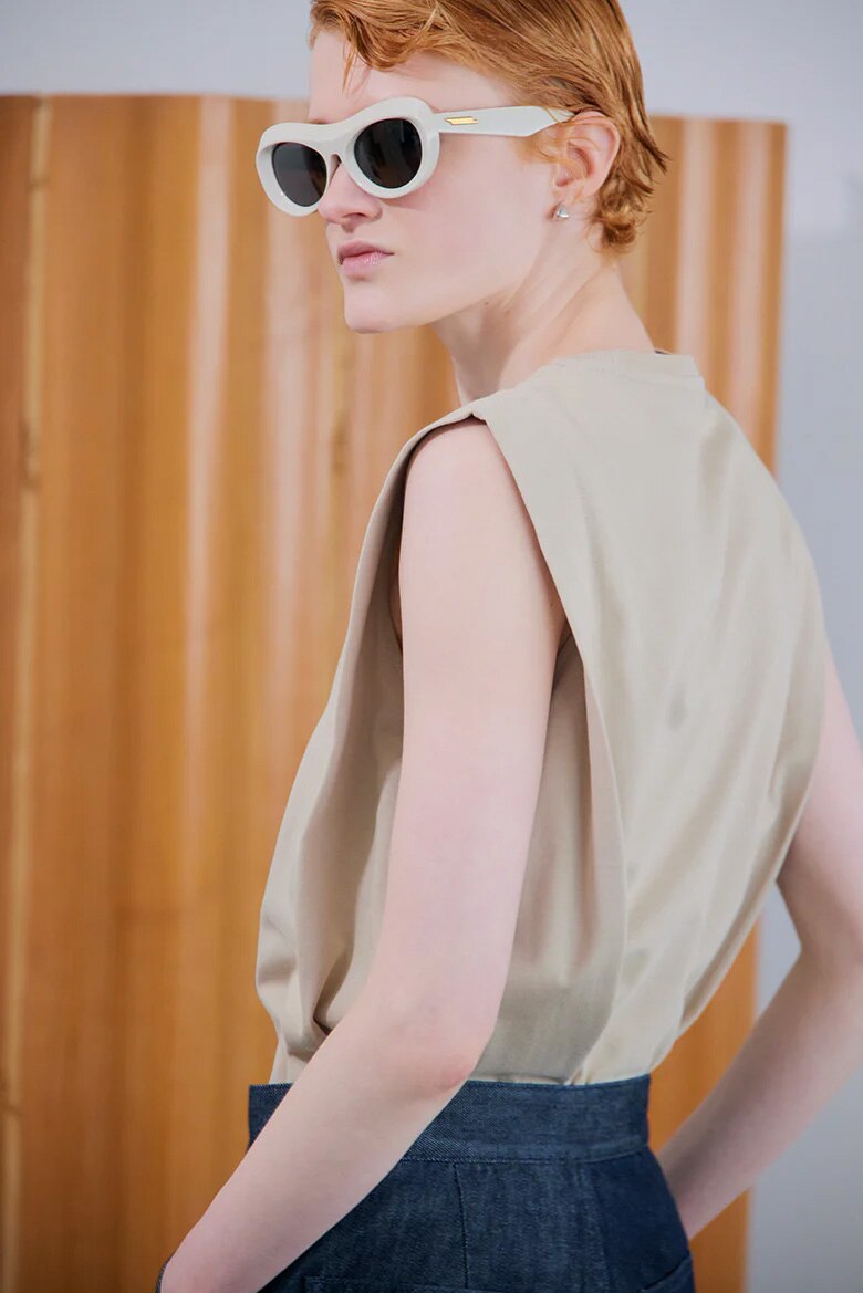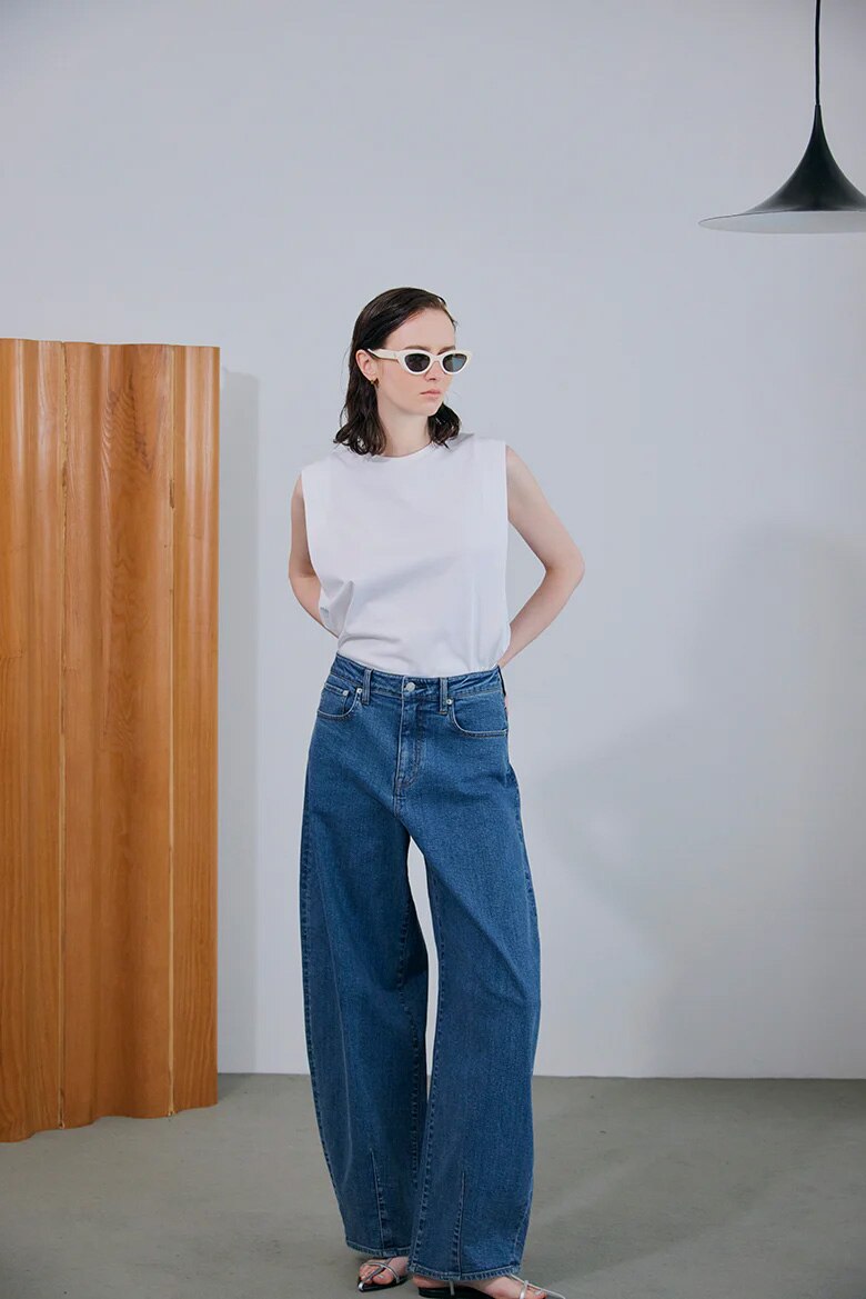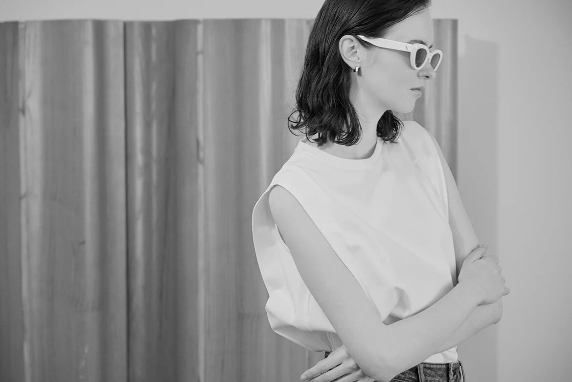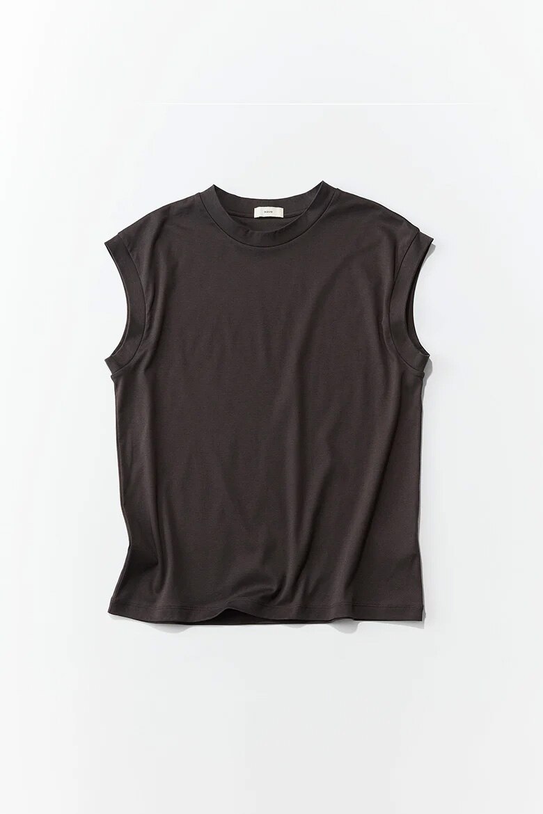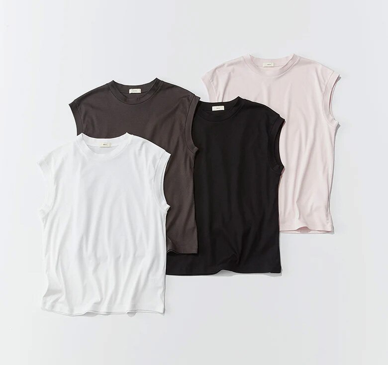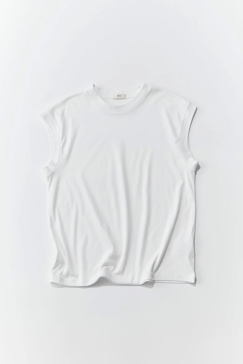 人気のファンクションTの素材を使ったノースリーブTシャツ。単なるノースリーブではなく、肩の部分にタックを入れることで構築的なシルエットに仕上げたReNAVEらしいモードな1枚。肩から脇にかけて奥行きが生まれ、気になる二の腕をほっそりと華奢に見せてくれます。