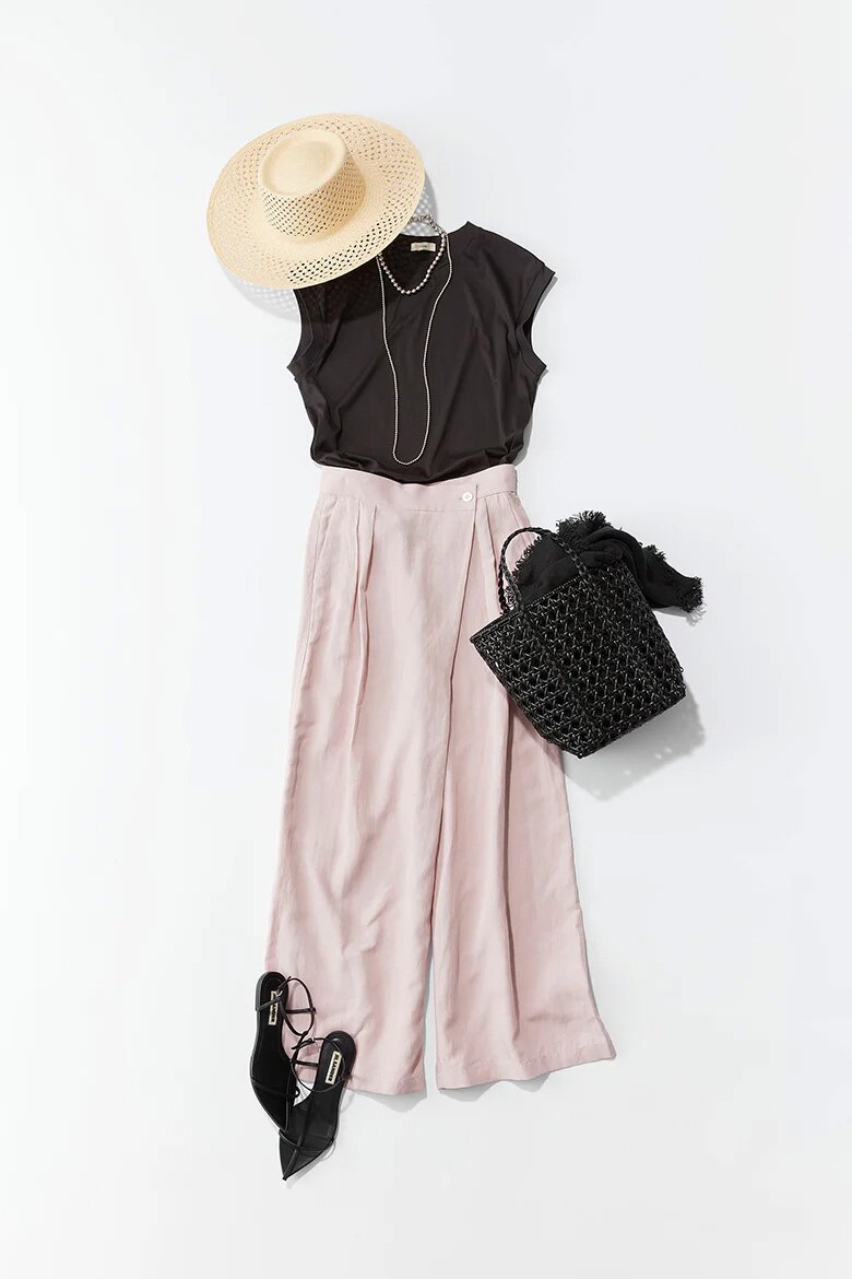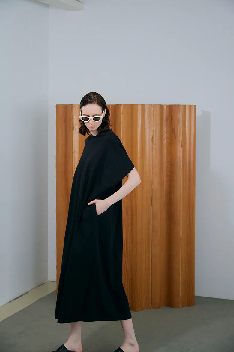 ワンピースも今シーズンから登場したデザイン。ボリューム感たっぷりでゆるやかなコクーンシルエットになっており、さらりと着るだけで美しいフォルムが完成します。実用性にもこだわり、サイドポケットが付いているのも魅力。さらりとした肌ざわりで汗をかいても体に張り付くことなく、真夏まで重宝する1着です。