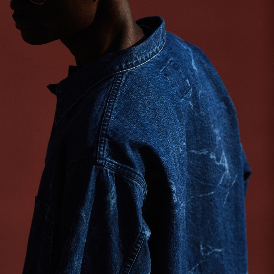 アメリカ海軍のヴィンテージにインスピレーションを受けたジャケット。シワのあたりをレーザープリントで表現。デニムの風合いや着心地の良さだけでなく、着るたびに味わいが増す素材なので、日常使いしながらゆっくり時間をかけて、自分好みに育てていくのも楽しみのひとつ。