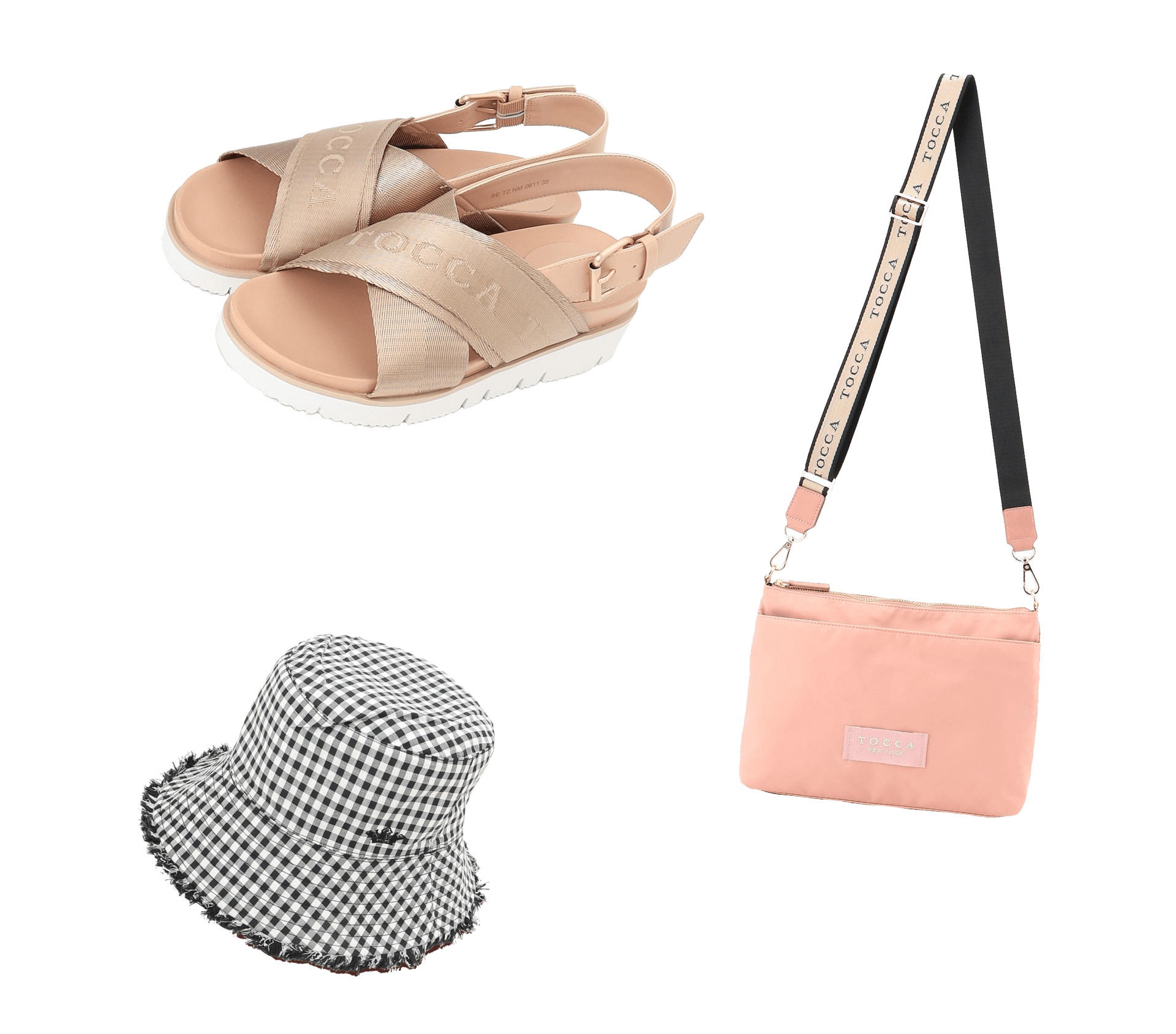 降り注ぐ太陽と風になびくドレス。プレイフルな T シャツとお気に入りの小物たち...